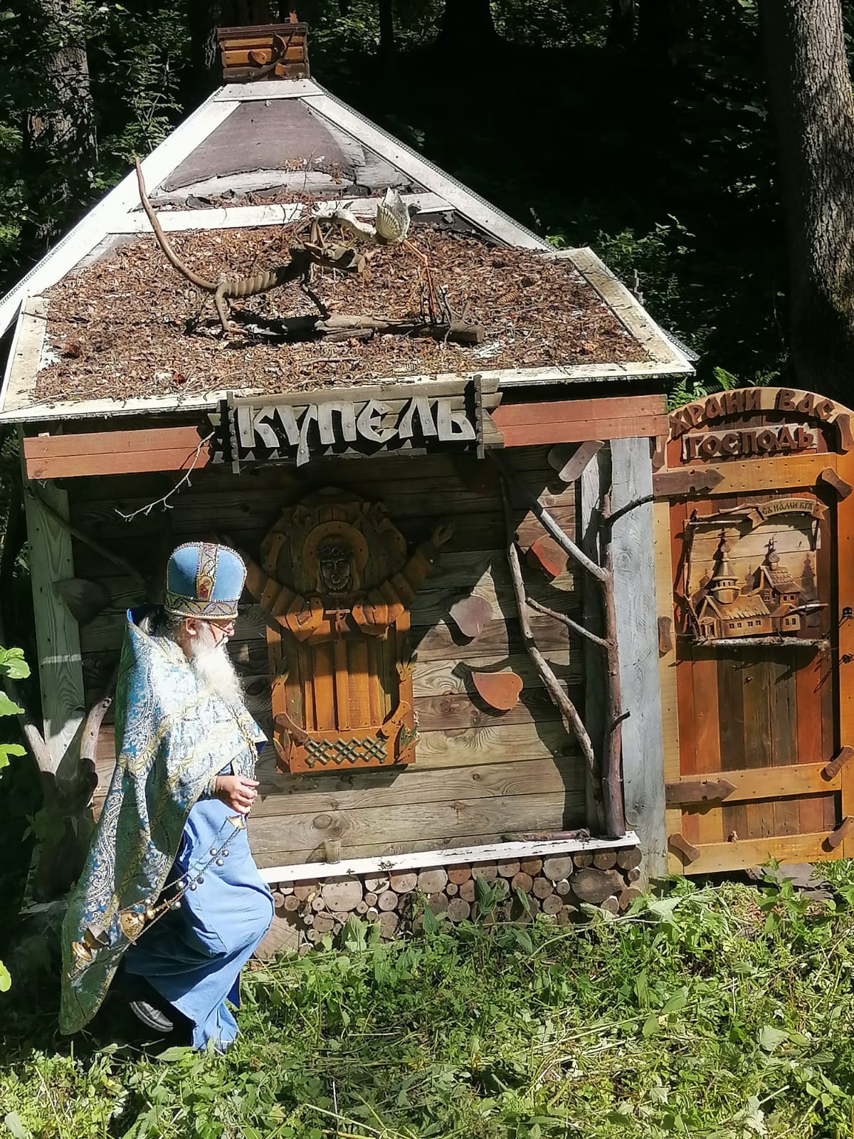 Место, где оборудован колодец и купальня, получилось очень уютное и красивое. Видно, что люди делали благое дело от души. И на колодце, и на купели красуются маленькие самодельные аисты — птицы благочестия, добра и домашнего уюта. Рядом с купальней оборудован необычный уголок для отдыха.