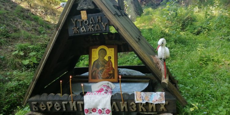 И замечательные слова, вырезанные из дерева, дополняют весь ансамбль этой рукотворной красоты: «Утоли жажду. Спаси и сохрани. Берегите близких».