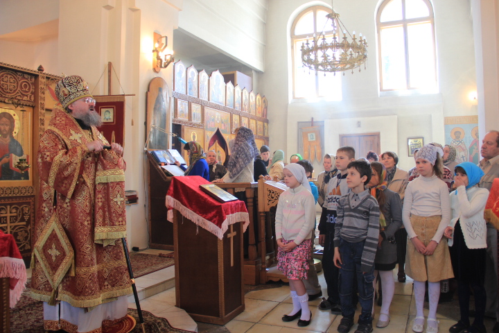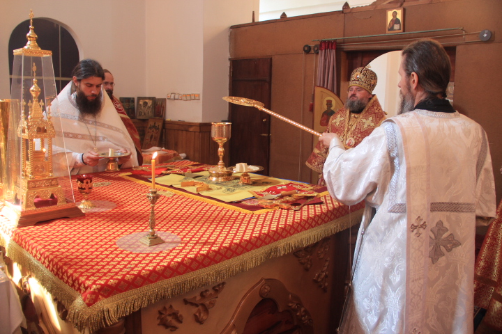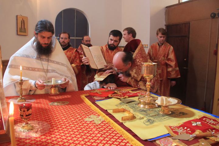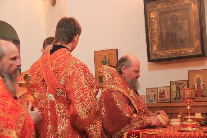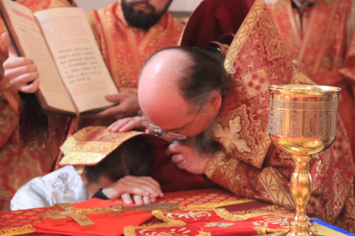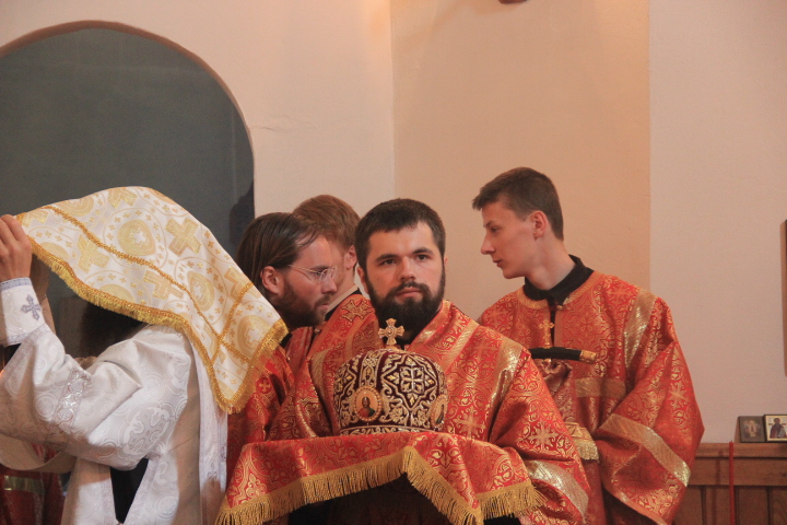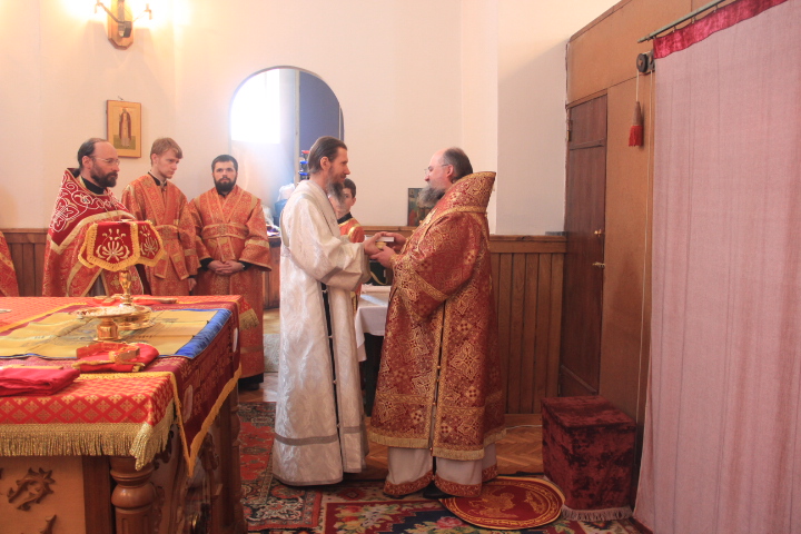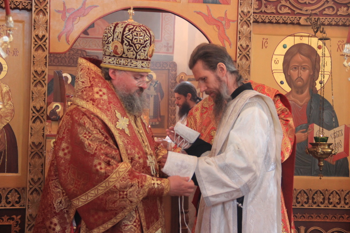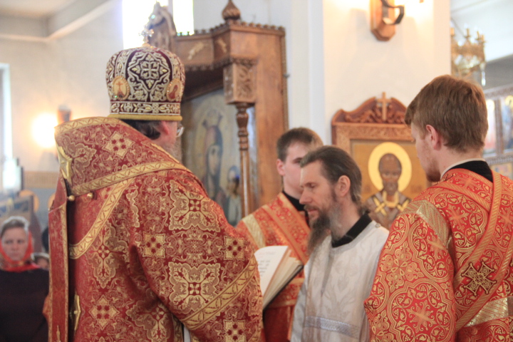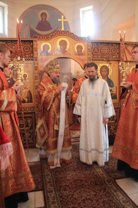 За литургией были совершены иерейская и диаконская хиротонии. По благословению Святейшего Патриарха Кирилла в сан пресвитера был рукоположен насельник ставропигиального монастыря Оптина Пустынь иеродиакон Фотий, в сан диакона – монах того же монастыря — Панкратий. После завершения богослужения владыка обратился к молящимся с архипастырским словом.
