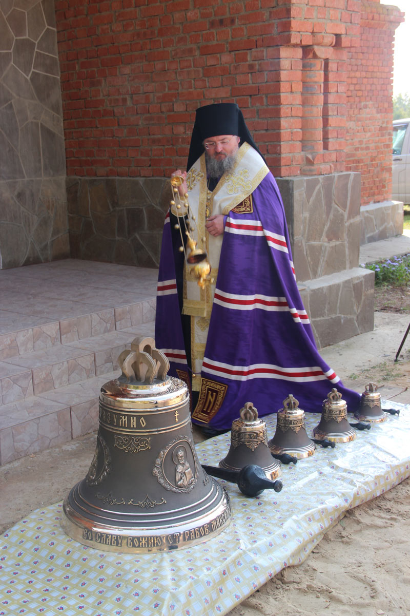 2 сентября. Епископ Козельский и Людиновский Никита совершил чин освящения колоколов для звонницы храма святителя Николая архиепископа Мир Ликийских в селе Никитино Сухиничского района.