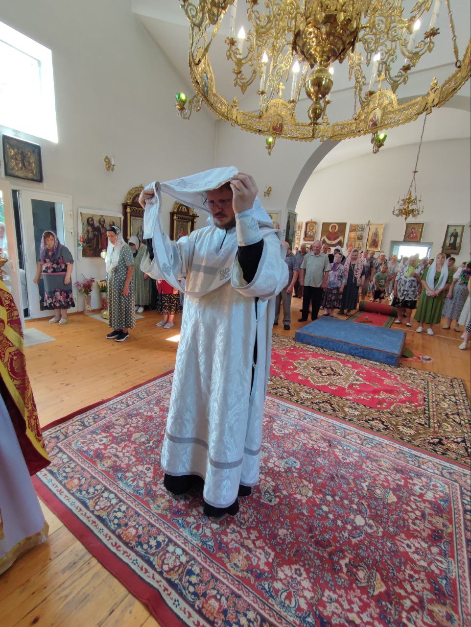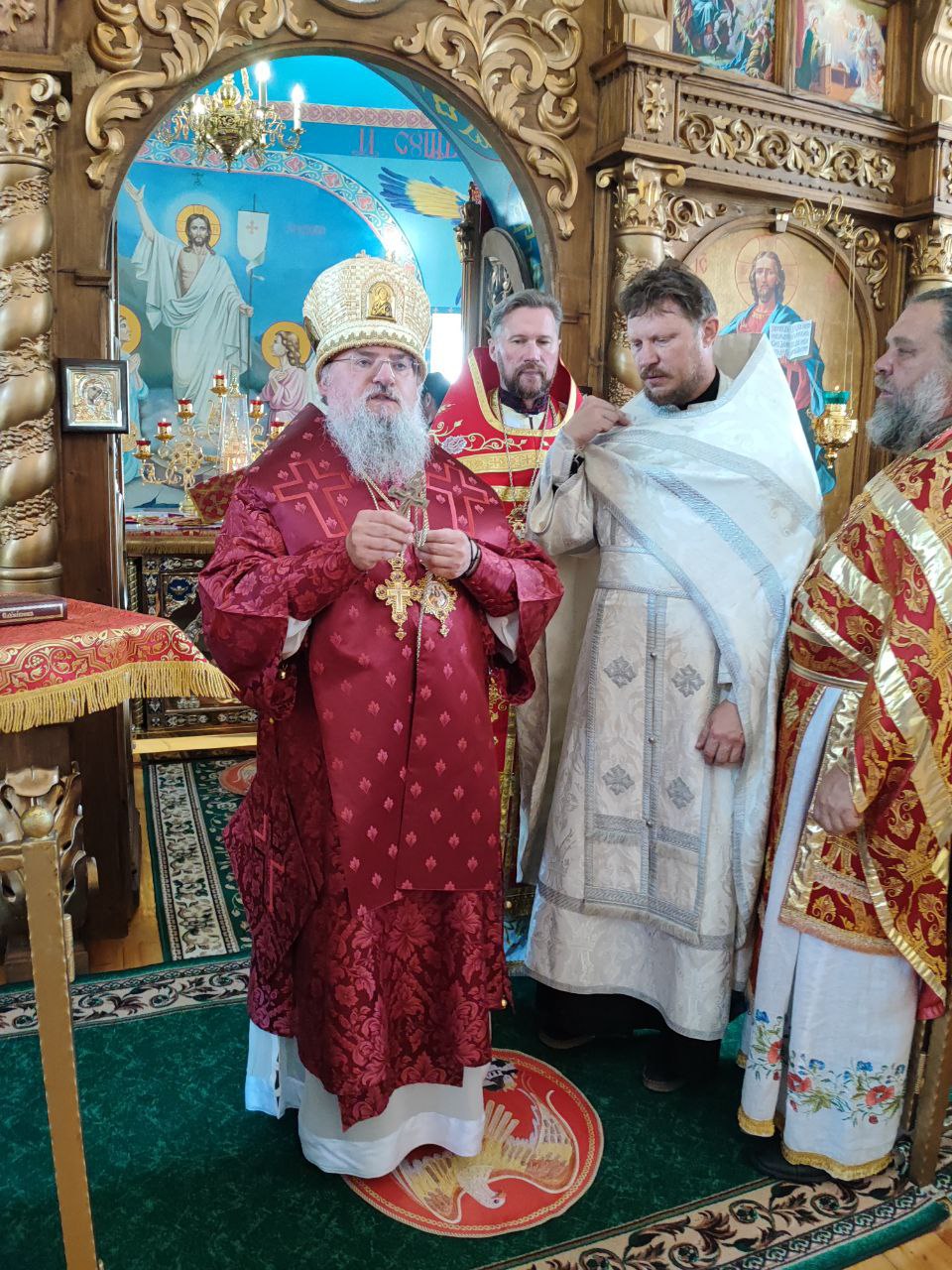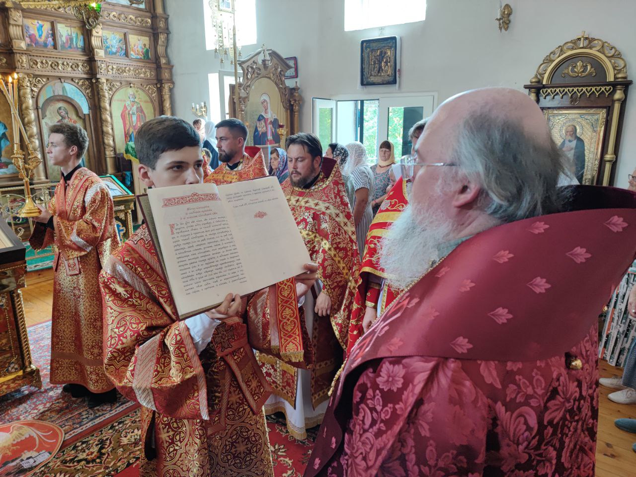 На литургии были вознесены особые прошения и молитва о Святой Руси. По благословению Святейшего Патриарха Московского и всея Руси Кирилла эта сугубая молитва совершается во всех храмах Русской Православной Церкви за каждым богослужением. После Великого Входа в сан пресвитера был рукоположен диакон Дионисий Кудрявцев.