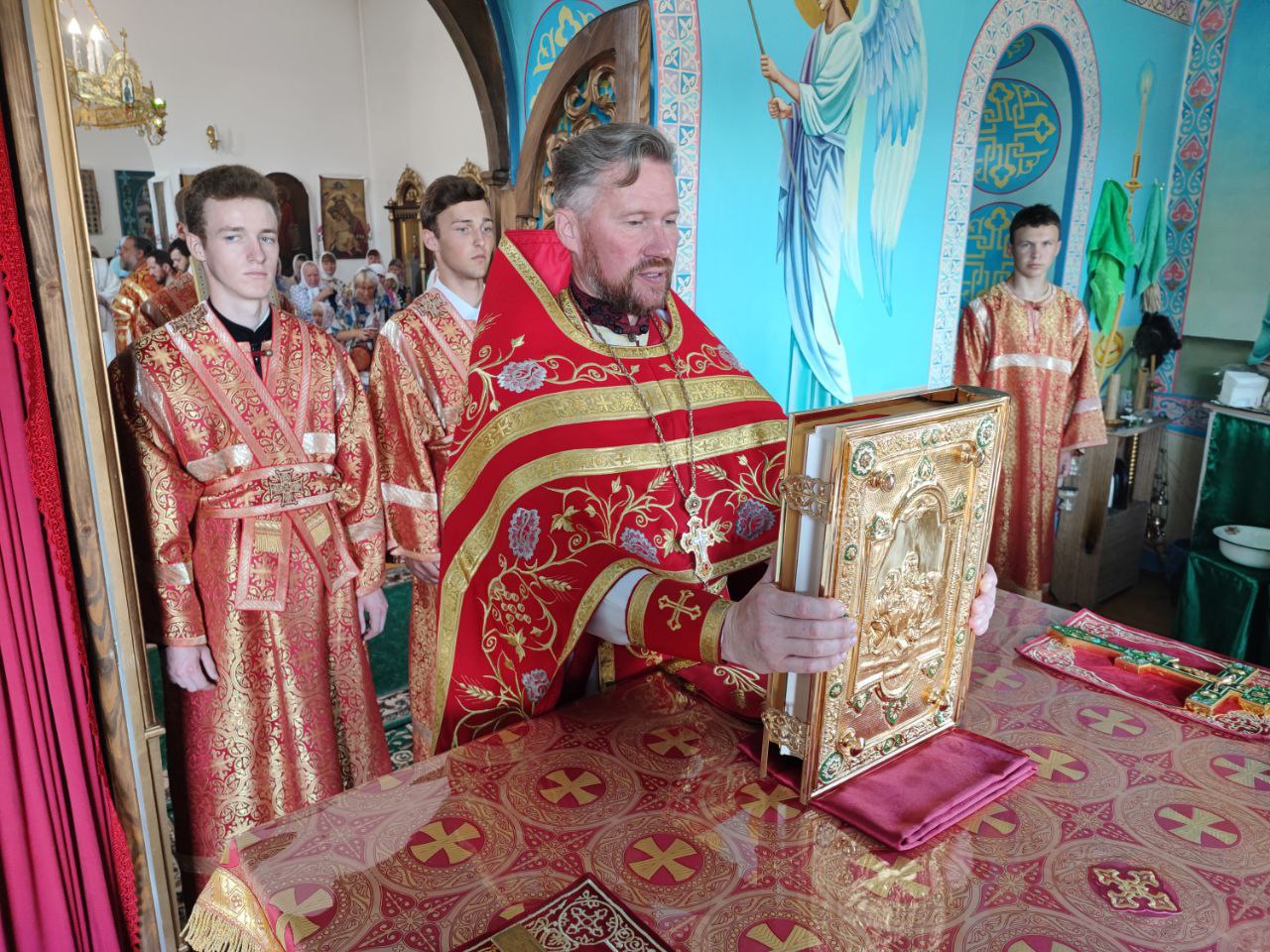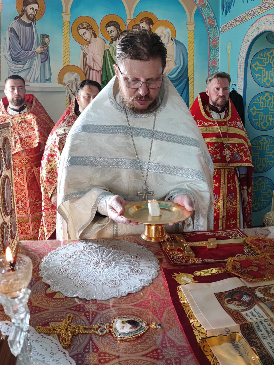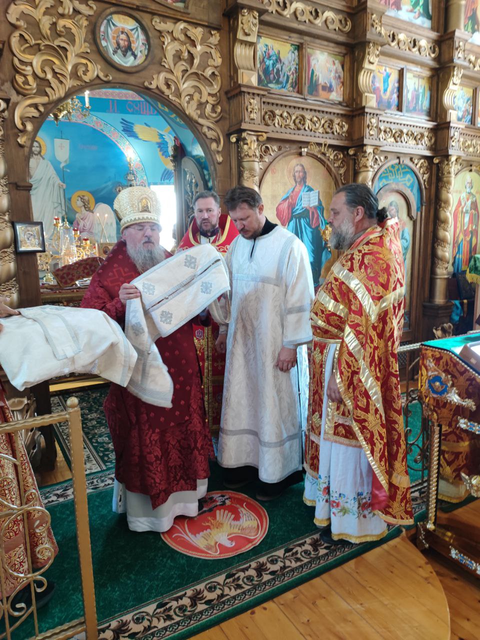 На литургии были вознесены особые прошения и молитва о Святой Руси. По благословению Святейшего Патриарха Московского и всея Руси Кирилла эта сугубая молитва совершается во всех храмах Русской Православной Церкви за каждым богослужением. После Великого Входа в сан пресвитера был рукоположен диакон Дионисий Кудрявцев.