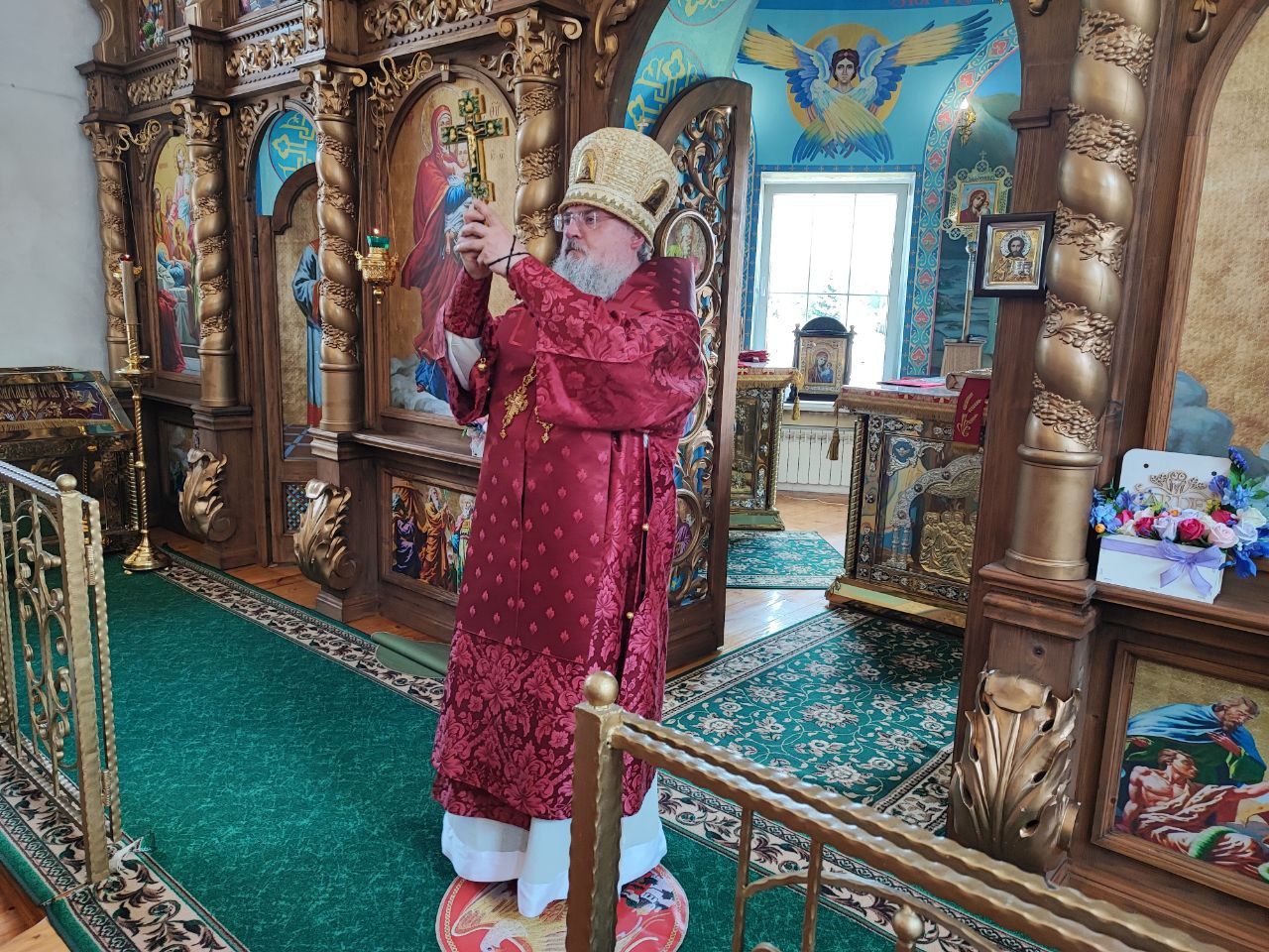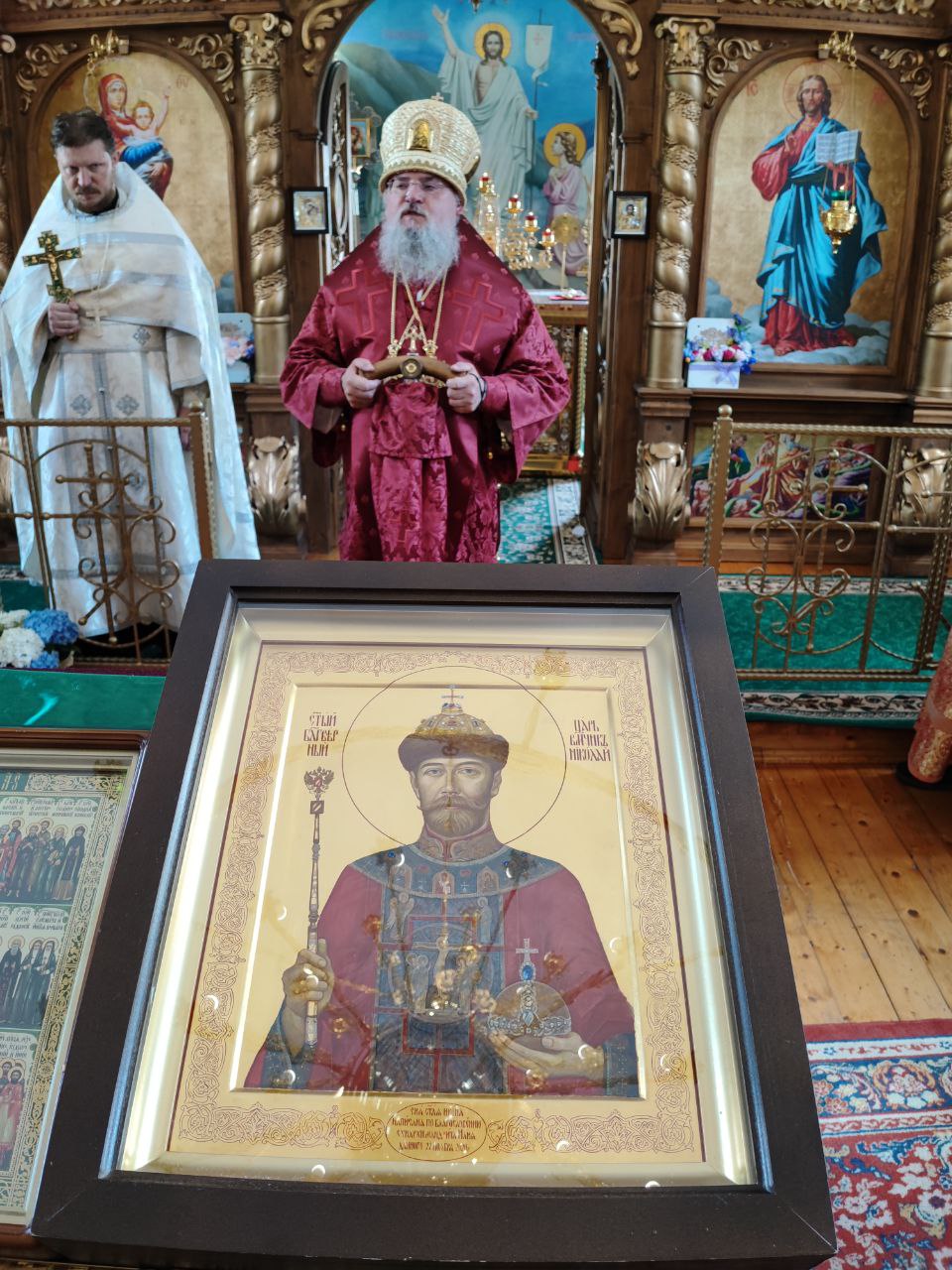 По отпусте литургии священнослужители совершили благодарственный молебен и славление святым царственным страстотерпцам. Владыка обратился к богомольцам с архипастырским словом.