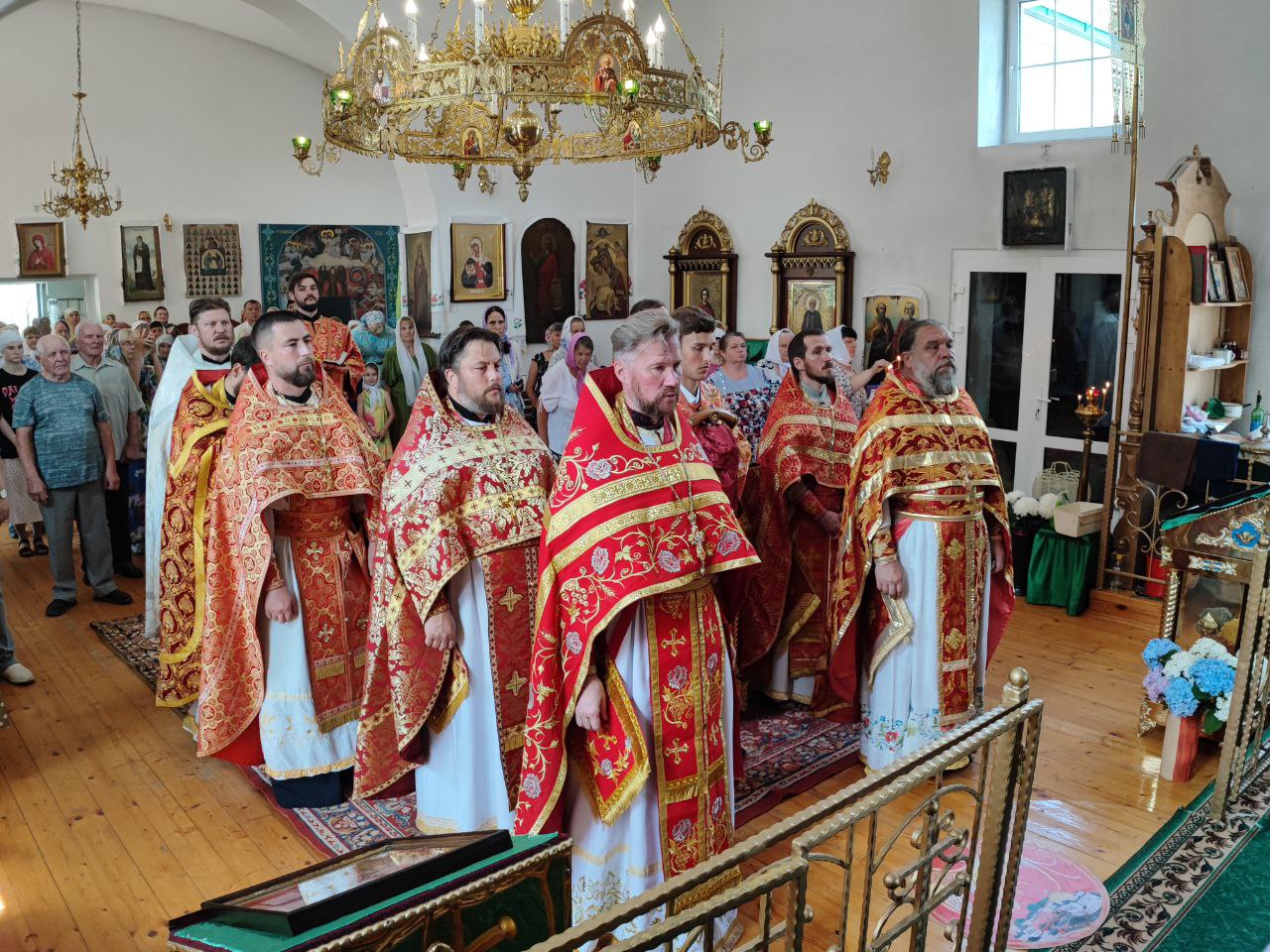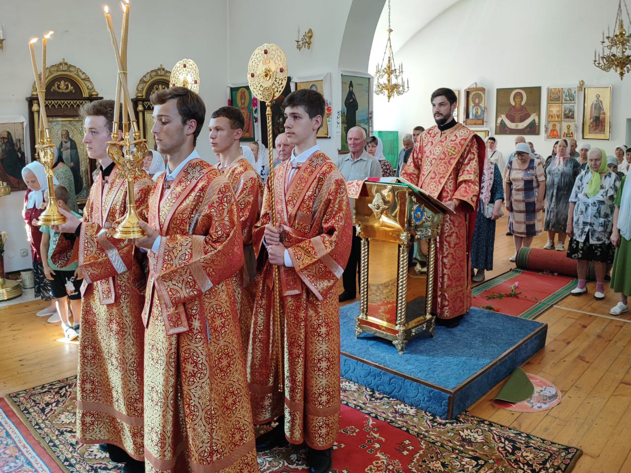 Архипастырю сослужили: настоятель прихода – протоиерей Александр Карпов, протоиерей Григорий Коновалов, протоиерей Антоний Хатунцев, иерей Георгий Махаринец, иерей Андрей Ахмедов, иерей Павел Мещеряков, иерей Михаил Пигусов и диакон Евгений Васильев.