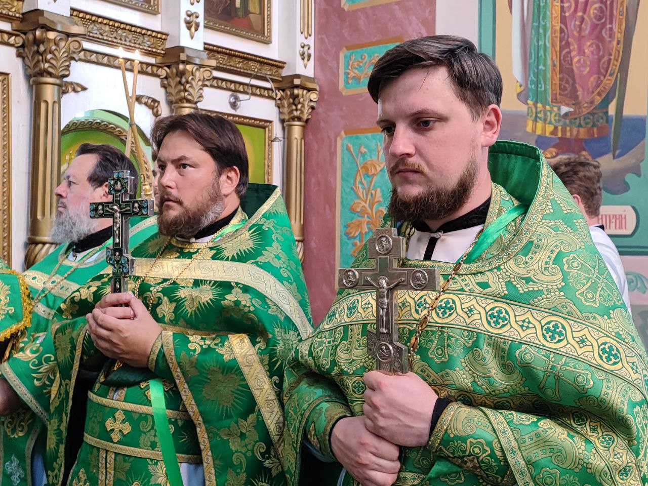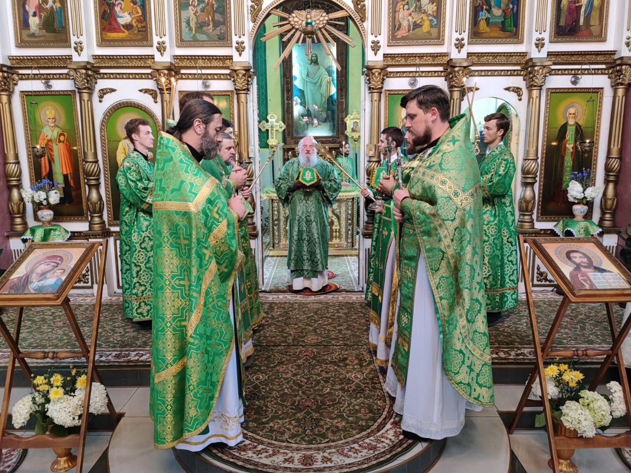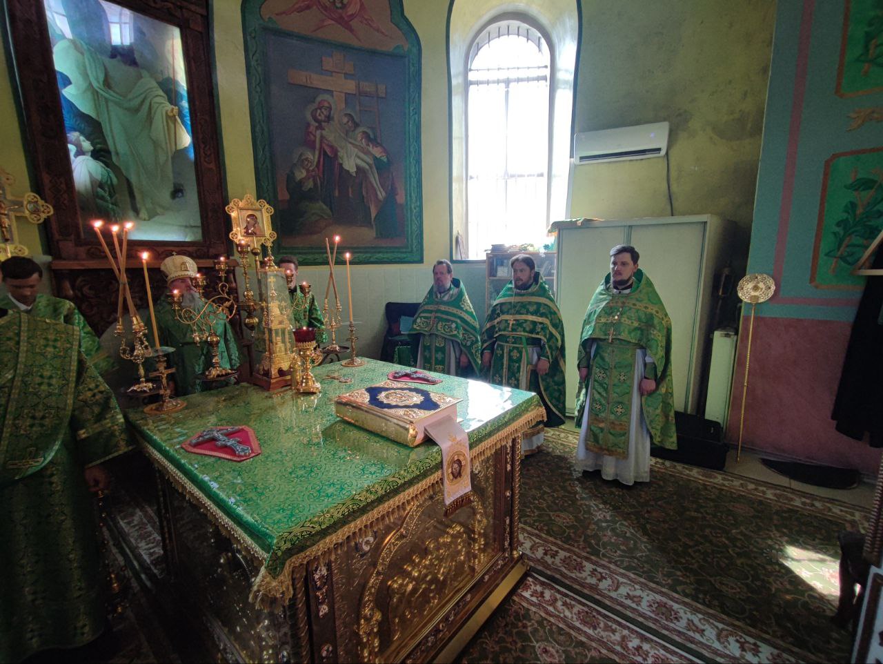 Преосвященному владыке сослужили: настоятель храма протоиерей Василий Биляк, протоиерей Михаил Карпенко, протоиерей Александр Брижан, протоиерей Антоний Хатунцев, иерей Иоанн Майоров, иерей Георгий Краснов, диакон Евгений Васильев и диакон Андрей Соколов.