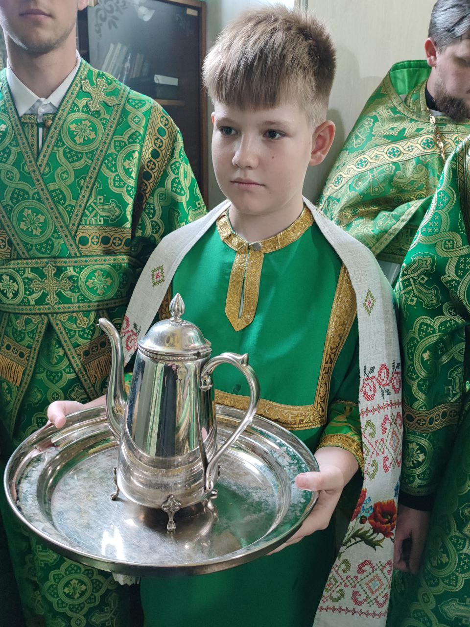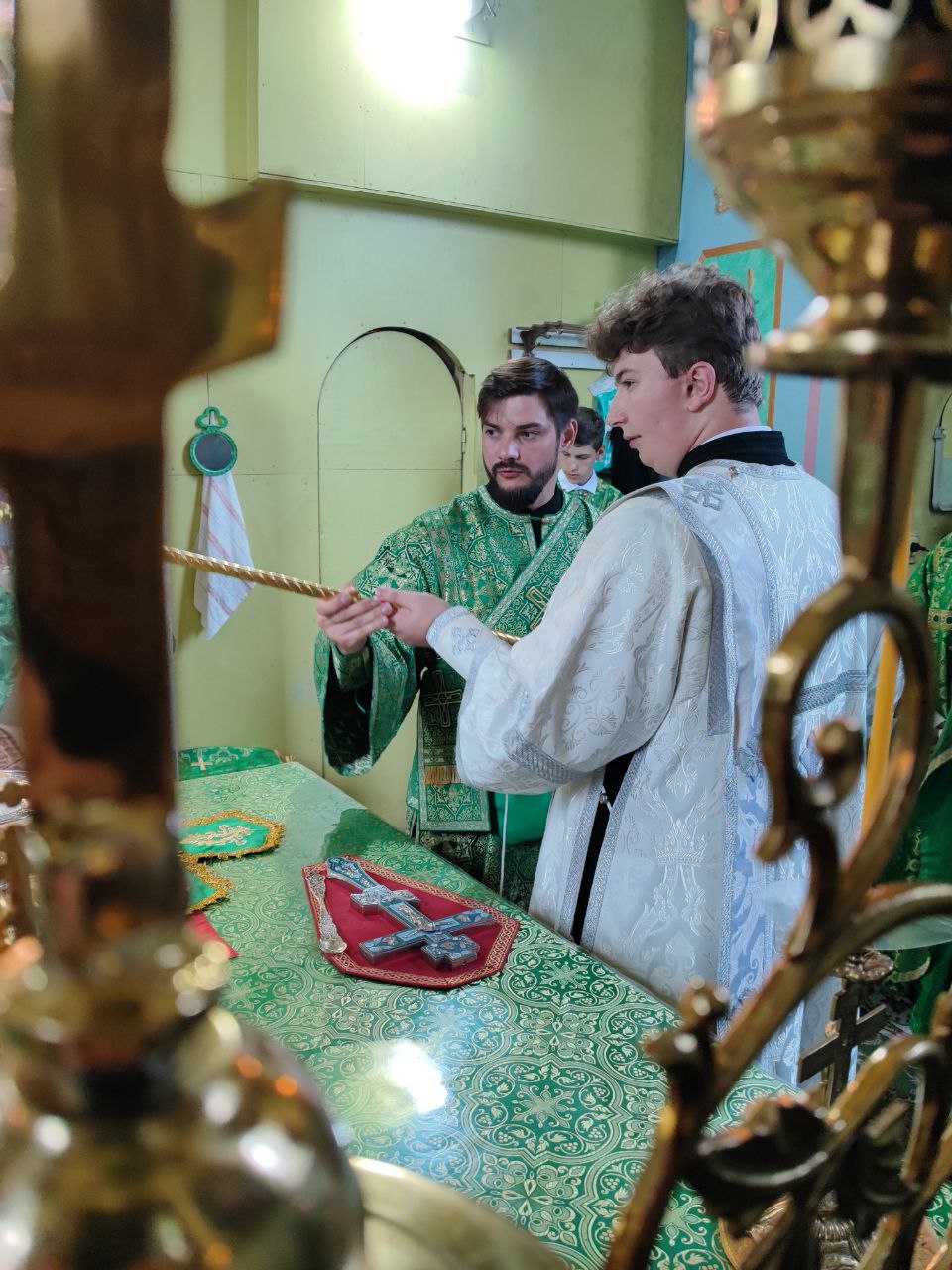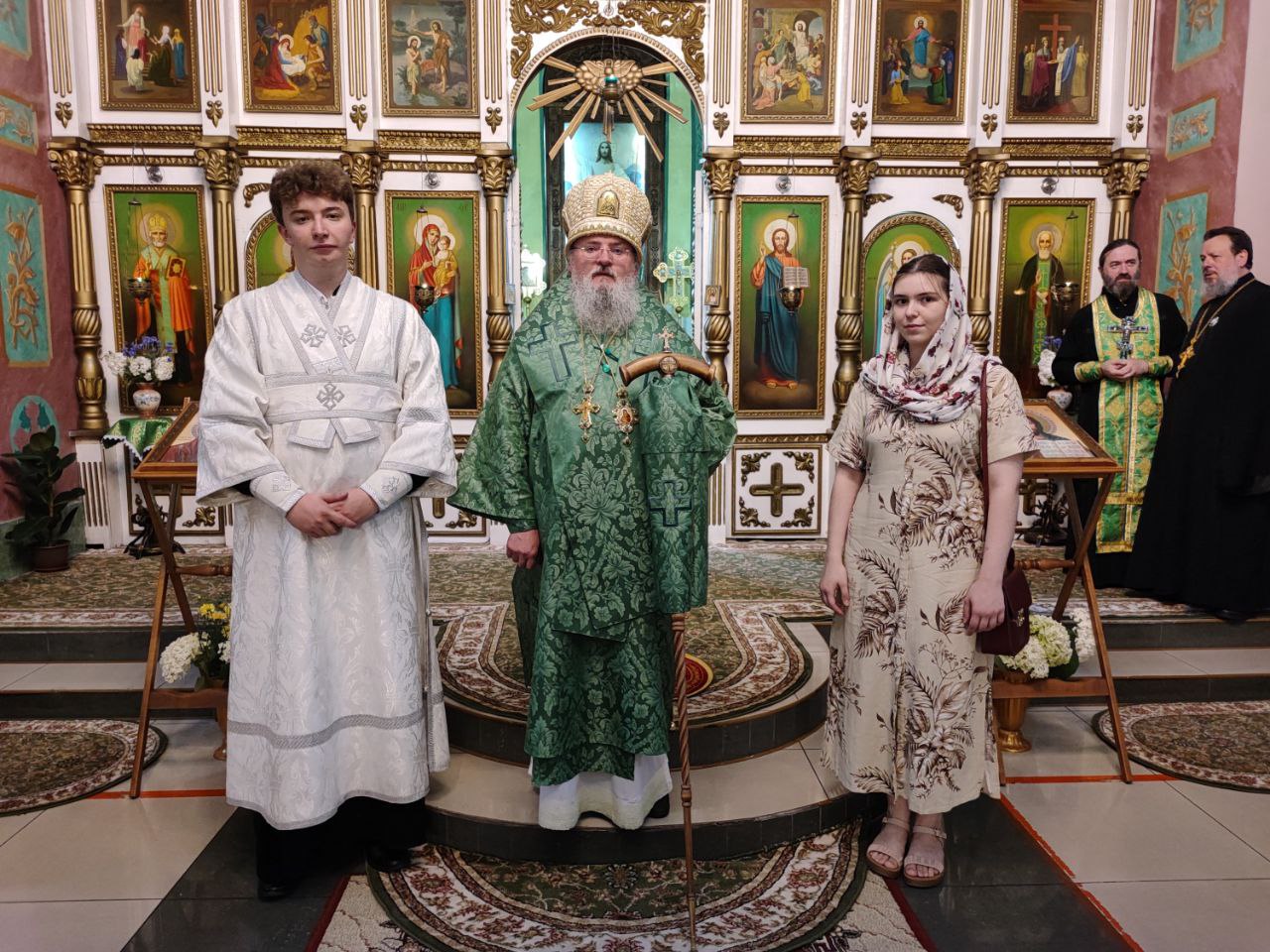 Преосвященному владыке сослужили: настоятель храма протоиерей Василий Биляк, протоиерей Михаил Карпенко, протоиерей Александр Брижан, протоиерей Антоний Хатунцев, иерей Иоанн Майоров, иерей Георгий Краснов, диакон Евгений Васильев и диакон Андрей Соколов.