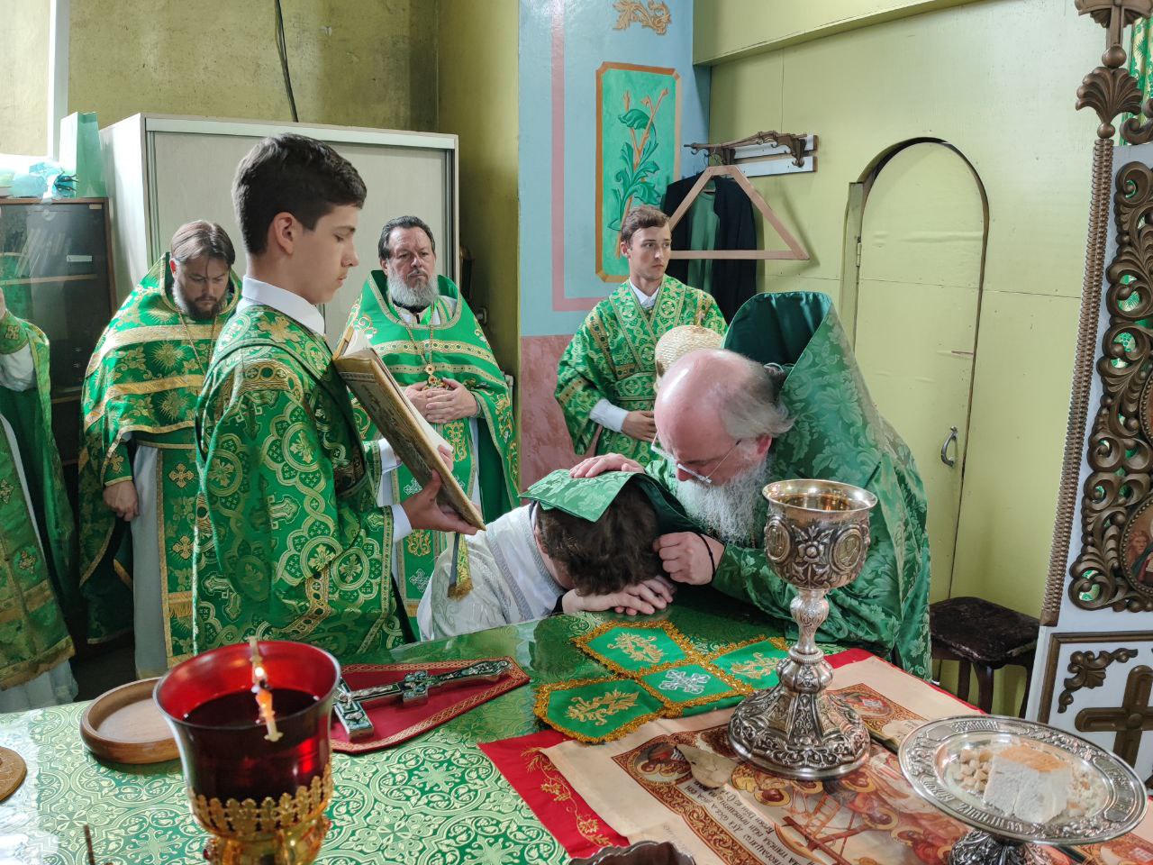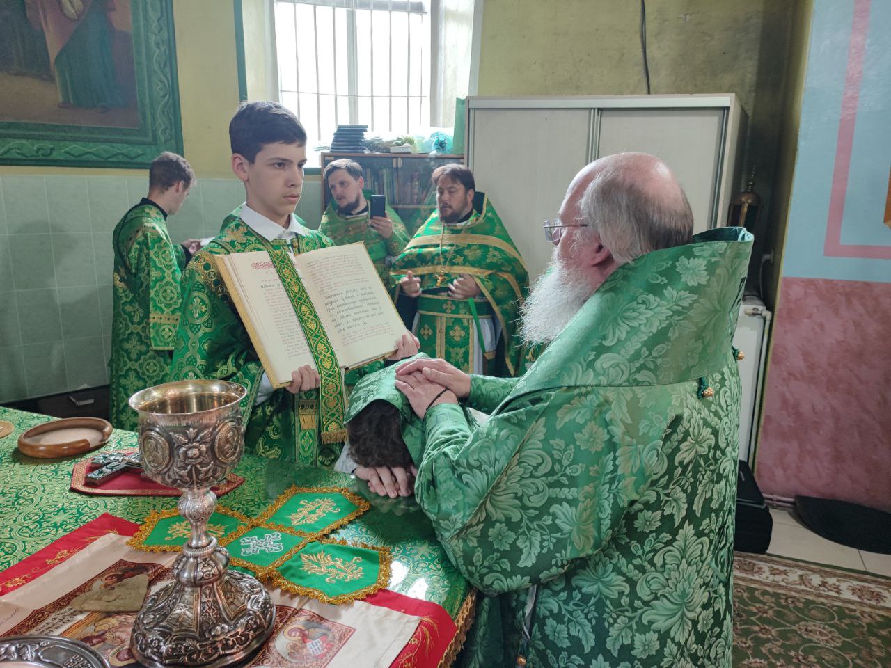 За богослужением в сан диакона, по поставлении во чтеца и иподиакона, к Казанскому собору города Людиново был рукоположен выпускник Калужской духовной семинарии 2024 года Никита Агарев.