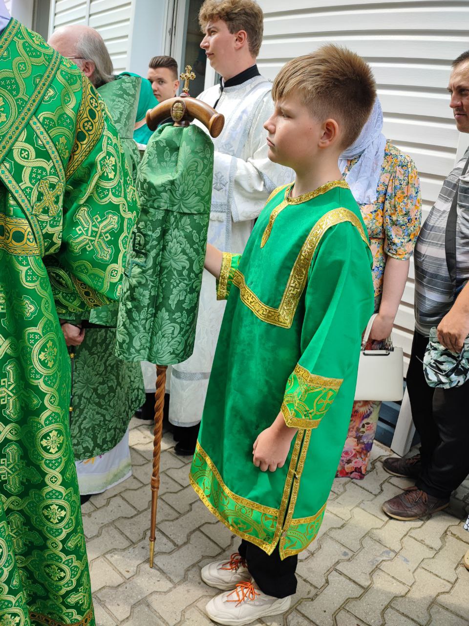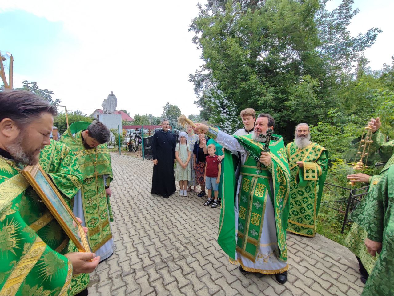 Преосвященному владыке сослужили: настоятель храма протоиерей Василий Биляк, протоиерей Михаил Карпенко, протоиерей Александр Брижан, протоиерей Антоний Хатунцев, иерей Иоанн Майоров, иерей Георгий Краснов, диакон Евгений Васильев и диакон Андрей Соколов.