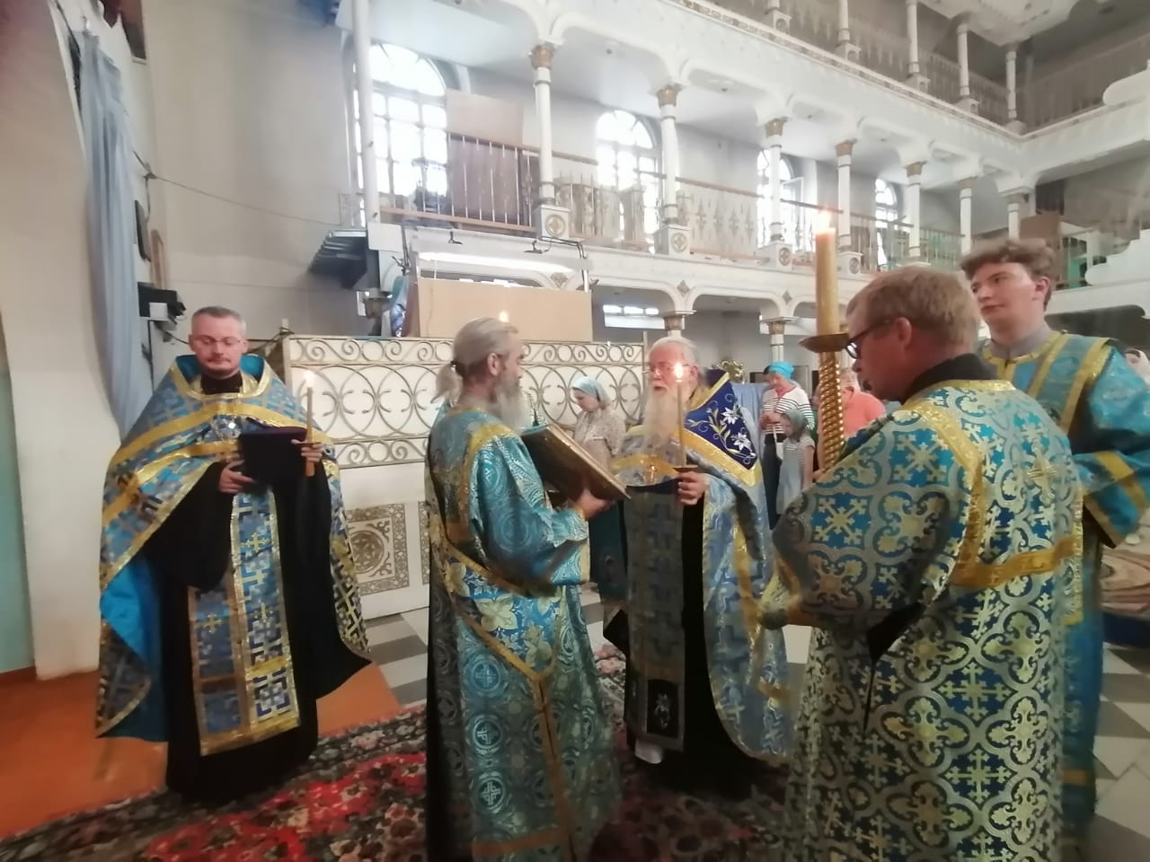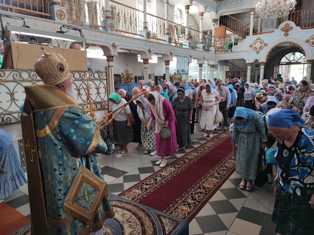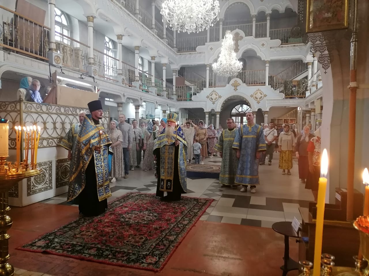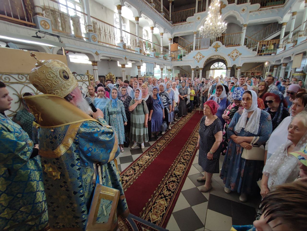 После литургии владыка Никита поздравил прихожан с престольным праздником. Архипастырь поблагодарил и поздравил настоятеля собора отца Алексия с праздником, пожелав ему милостью Божией и молитвами Богородицы, а также помощью добрых людей, завершить восстановительные работы по храму.