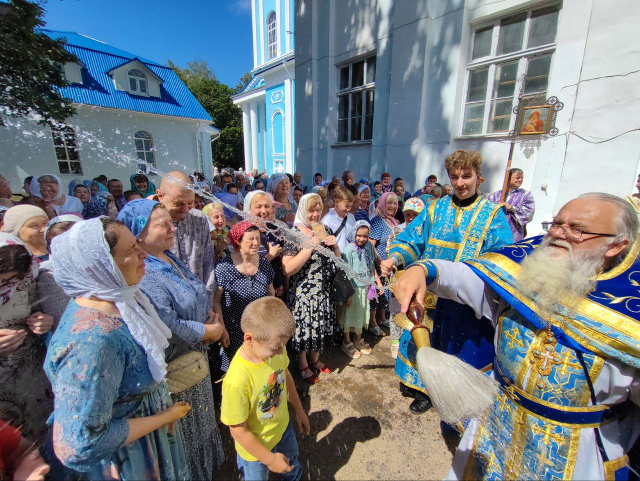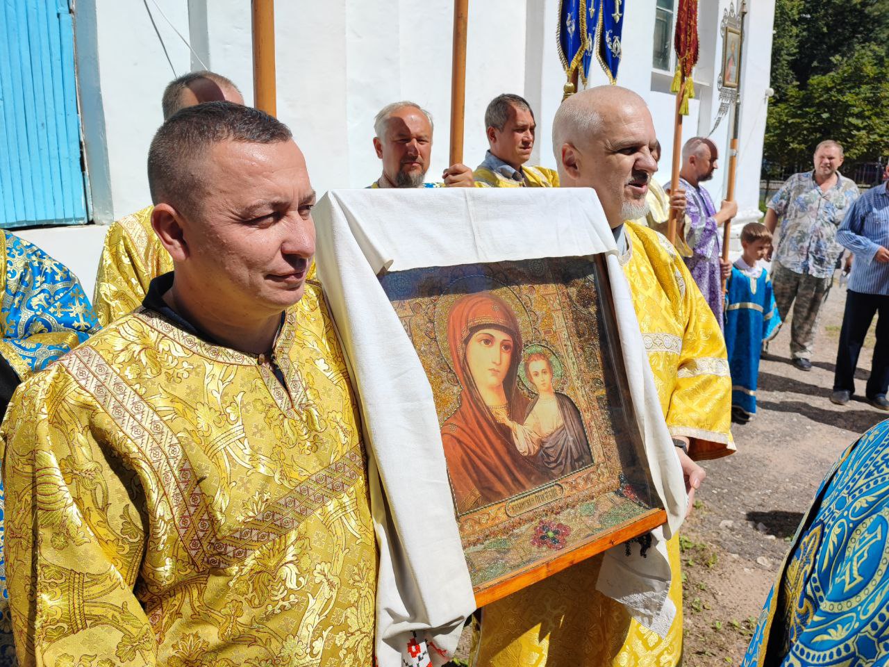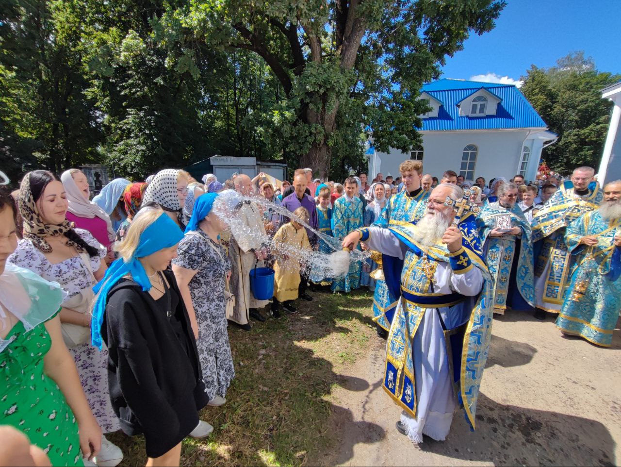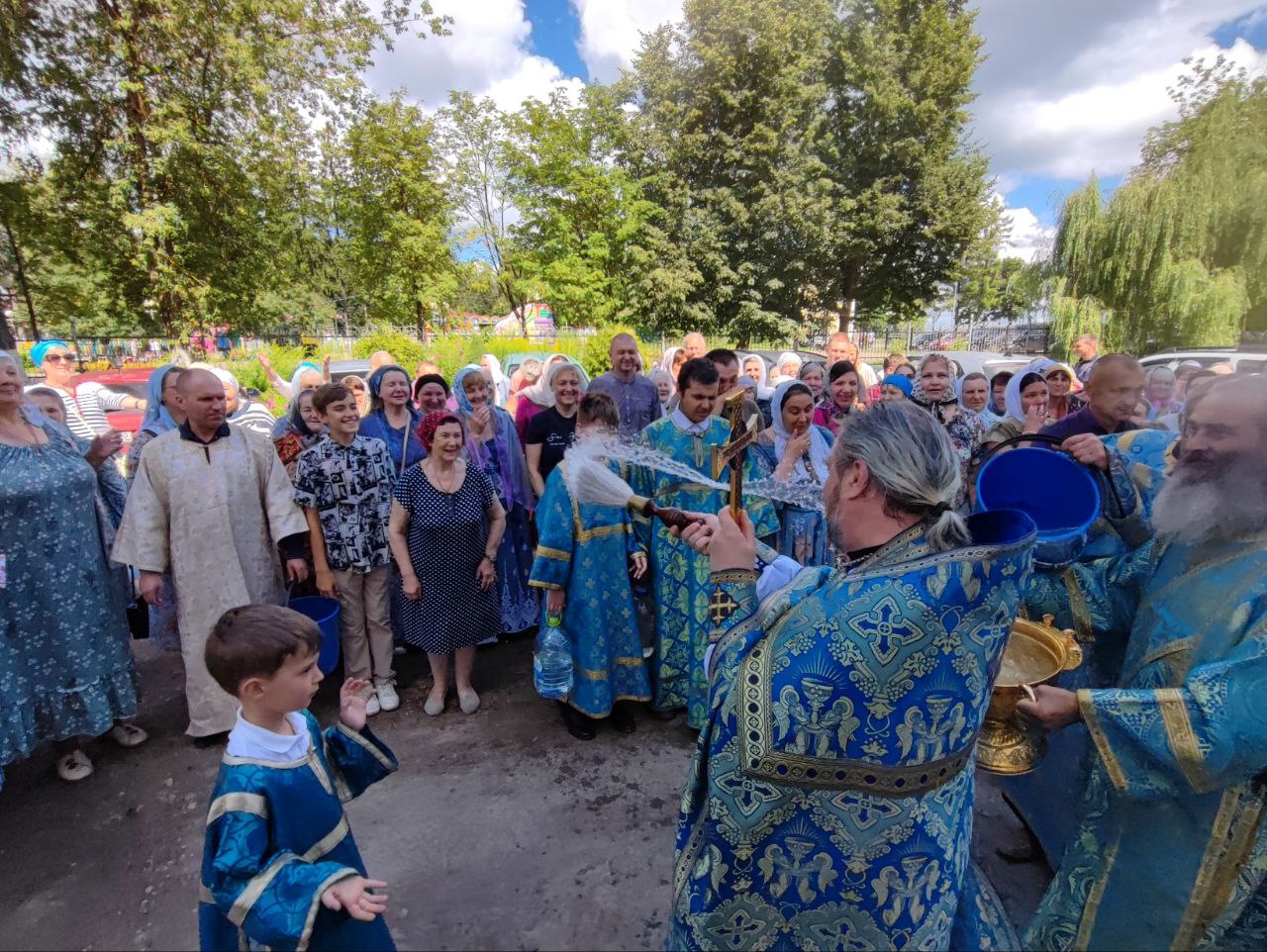 В сам праздник, 21 июля 2024 года, был отслужен водосвятный молебен с акафистом Казанской Божией Матери. При окроплении святой водой прихожан, по традиции, протоиерей отец Алексий освятил маскировочные сети.
