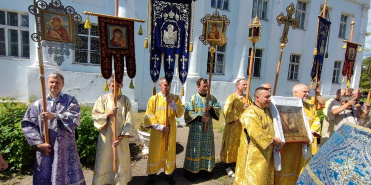 Крестный ход в день престольного праздника в Казанском соборе города Людиново