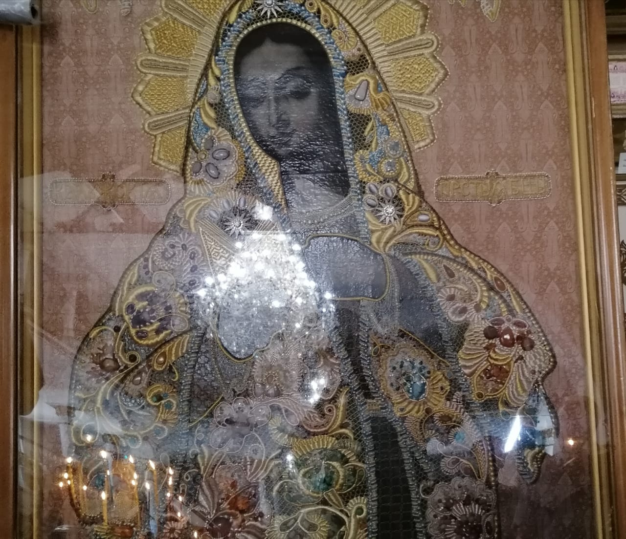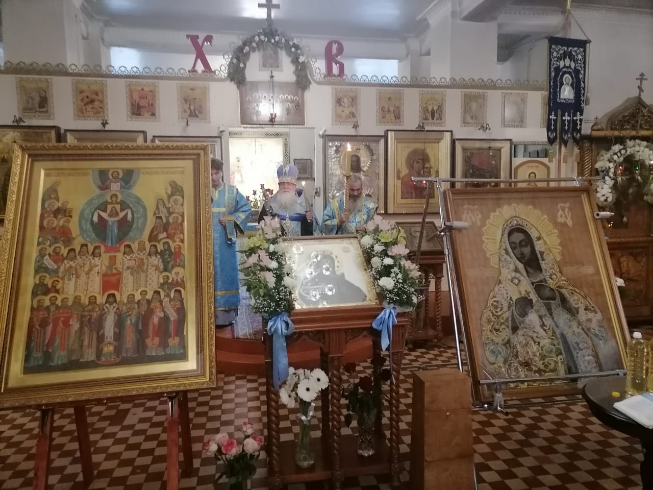 «О Пресвятая Владычице Богородице, Царице Небеси и земли! К Тебе прибегаем и к Твоей помощи взываем: сохрани землю нашу от нашествия врагов иноплеменных, и от всякия болезни душевныя и телесныя, и от смертоносныя язвы, да всегда поем, величаем и славим Тя, Пресвятую Богородицу, яко благую и Дивную Заступницу нашу во веки веков. Аминь».