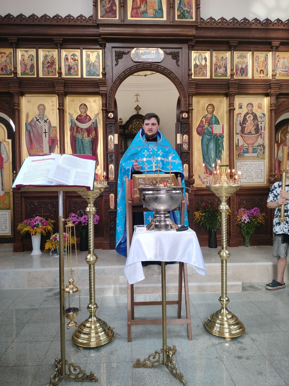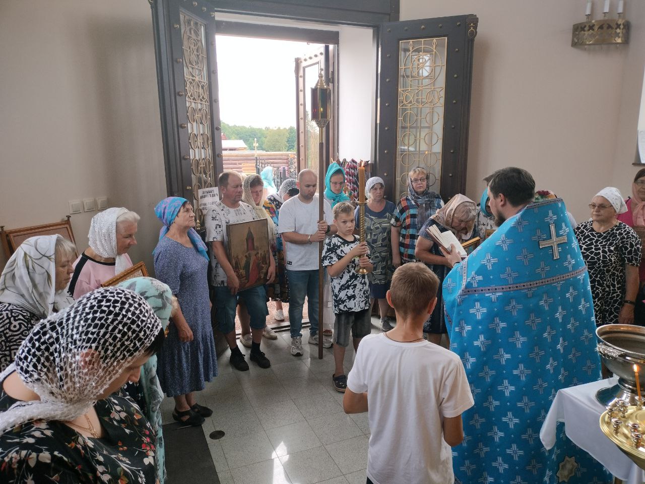 В завершение Крестного хода иерей Иоанн окропил строящийся Дом Причта, который находится в стадии постройки. После чего обратился к прихожанам с проповедью о важности молитвы Матери Божией и рассказал об иконе Божией Матери «Живоносный Источник».