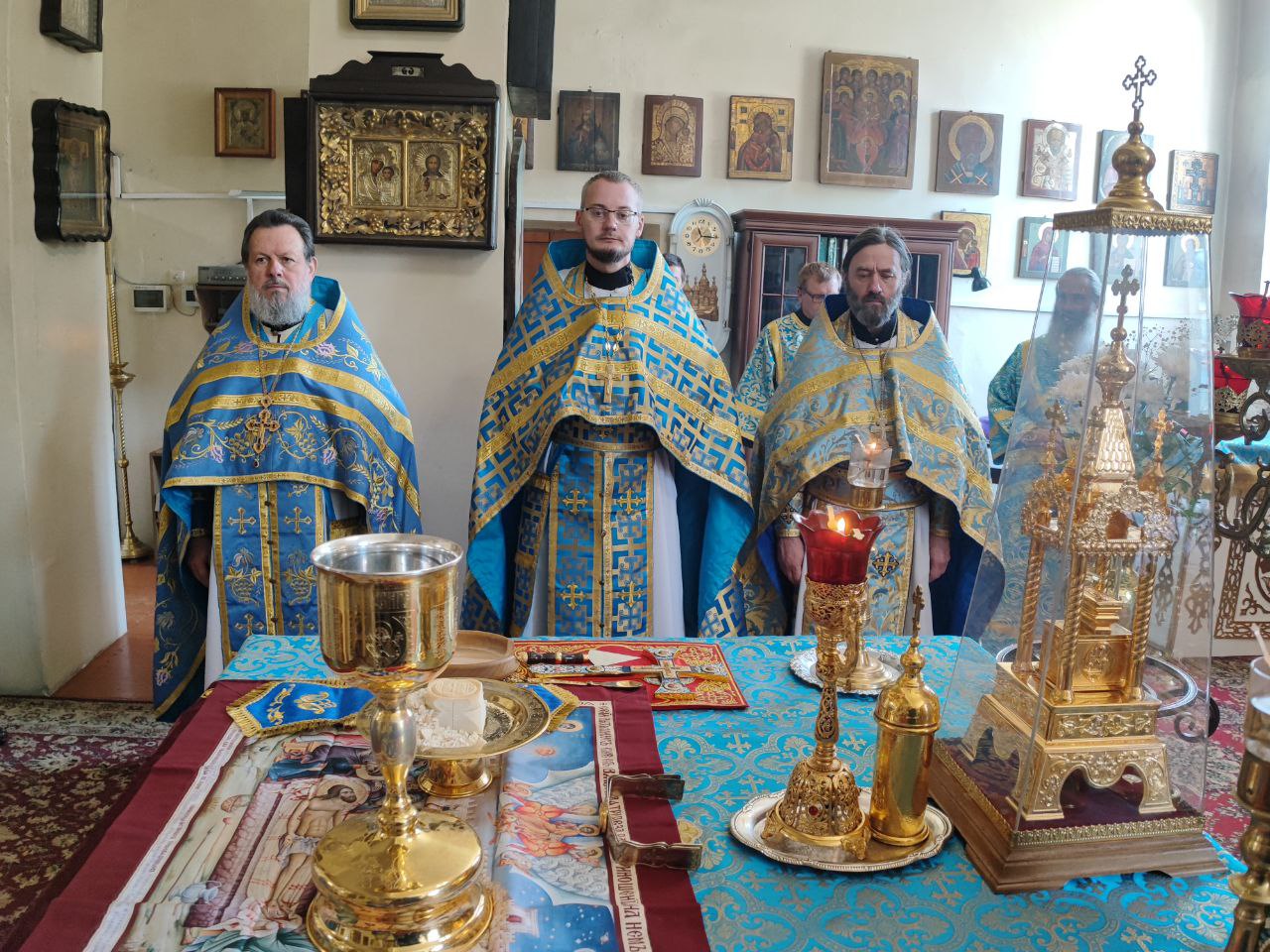 Утром пред святынями был совершен водосвятный молебен с чтением акафиста Божией Матери, а затем Божественная литургия, которую возглавил епископ Никита. Архипастырю сослужили: благочинный Людиновского округа настоятель Казанского собора города Людиново протоиерей Алексий Жиганов, настоятель храма преподобного Сергия Радонежского протоиерей Василий Биляк, настоятель Лазаревского храма протоиерея Михаила Карпенко, иерей Алексий Сначев, иерей Георгий Краснов, иерей Дионисий Кудрявцев, диакон Андрей Соколов и диакон Никита Агарев. После сугубой ектении епископ Никита вознес молитву о Святой Руси. По благословению Святейшего Патриарха Московского и всея Руси Кирилла эта сугубая молитва совершается во всех храмах Русской Православной Церкви за каждым богослужением. По отпусте литургии священнослужители совершили славление Божией Матери, а затем владыка Никита обратился к богомольцам с архипастырским словом.