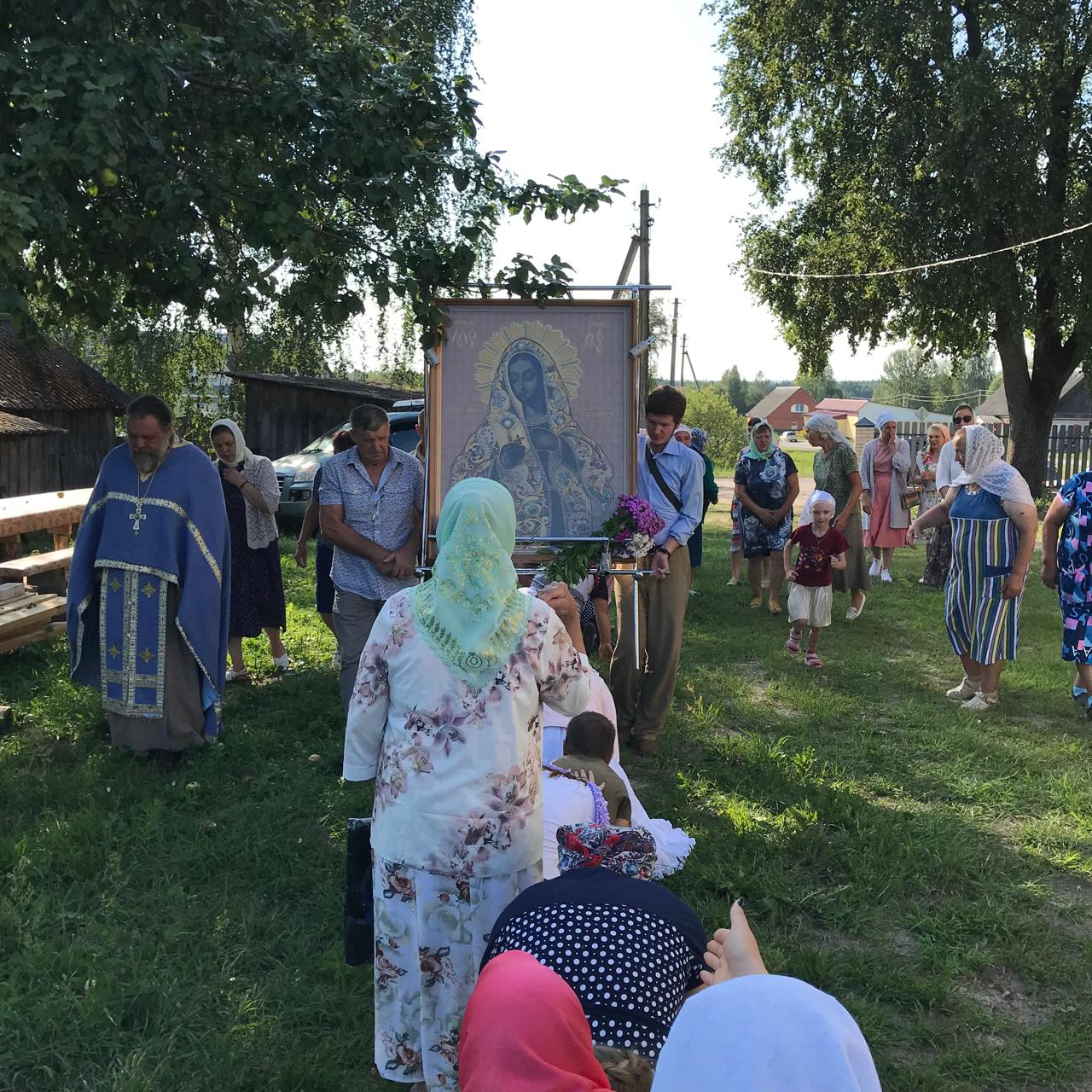 28 июля Божественную литургию в храме в честь Успения Пресвятой Богородицы села Хвастовичи Козельской епархии совершил благочинный округа протоиерей Александр Карпов в сослужении иерея Павла Мещерякова. На литургии были вознесены особые прошения и молитва о Святой Руси, по благословению Святейшего Патриарха Московского и всея Руси Кирилла эта сугубая молитва совершается во всех храмах Русской Православной Церкви за каждым богослужением. По окончании службы был отслужен молебен с акафистом Божией Матери. Далее чудотворная икона и образ новомучеников и исповедников земли Калужской проследовали в поселок Дудоровский Ульяновского района.