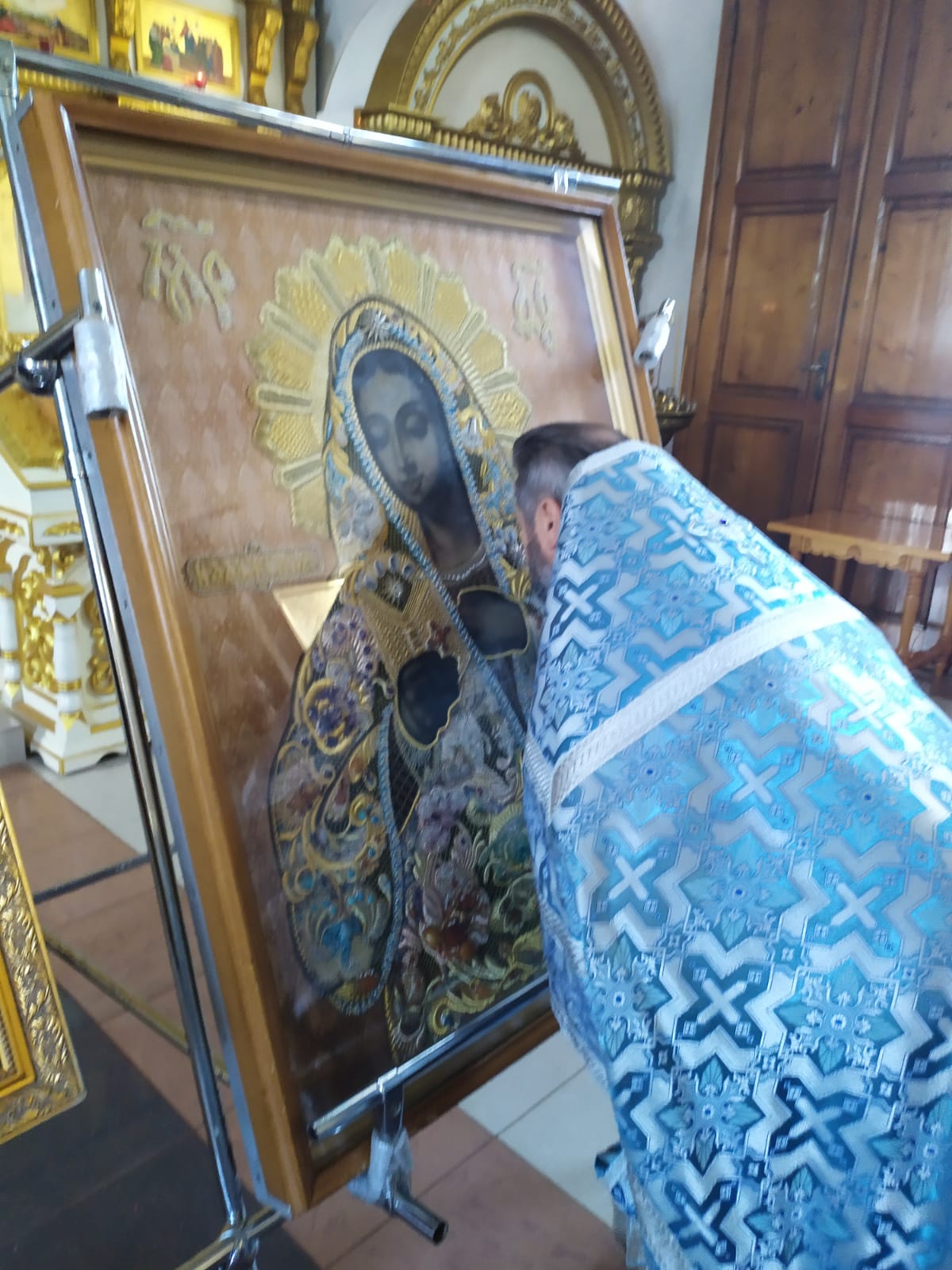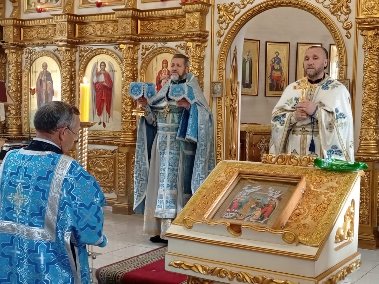 Отец Димитрий обратился к прихожанам со словами о том, что по милости и заступничеству Богородицы был восстановлен Успенский храм. Пред этим образом молились и просили покровительства Божией Матери, и она явила Свою благодать.