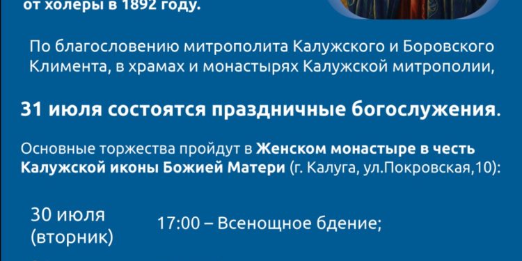 В храмах и монастырях Калужской митрополии пройдут богослужения Собора Калужских святых