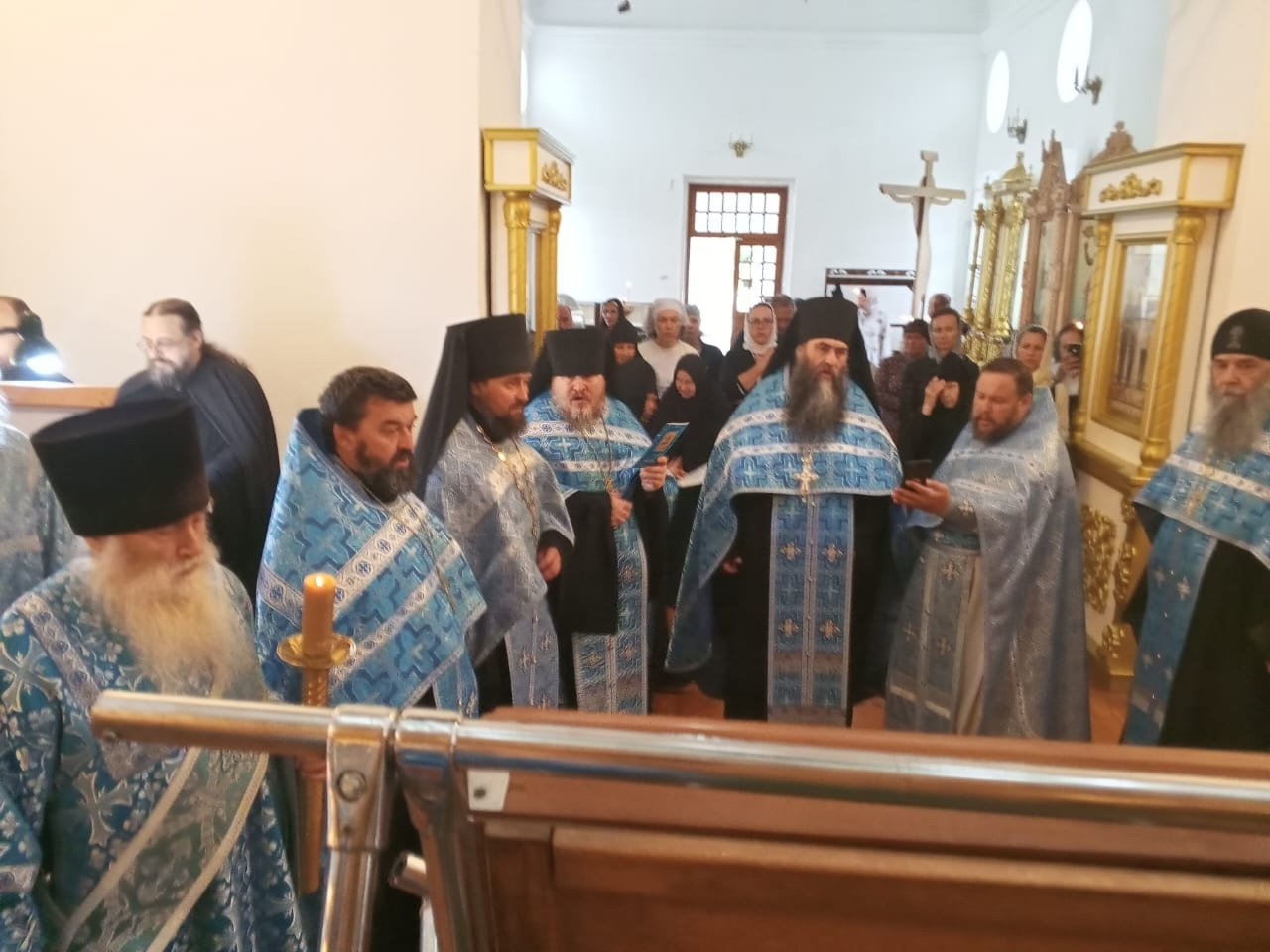 Братия, паломники и сестры женской обители Святых Жен Мироносиц, встретили крестный ход с образом Пресвятой Богородицы «Калужская» и икону новомучеников и исповедников Земли Калужской у святых врат обители. Святыни торжественно с пением тропарей и молитвословий перенесли в главный храм монастыря в честь иконы Спаса Нерукотворного. В храме святыни заняли центральное место перед амвоном. Была совершена Божественная литургия, после которой отслужен молебен с акафистом Матери Божией.