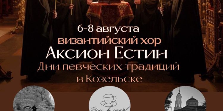 8 августа в 20:00 в Успенском кафедральном соборе г. Козельска состоится концерт духовной музыки хора «Аксион Естин» под названием «Древние мелодии Афона».