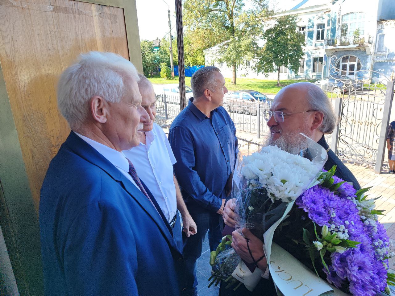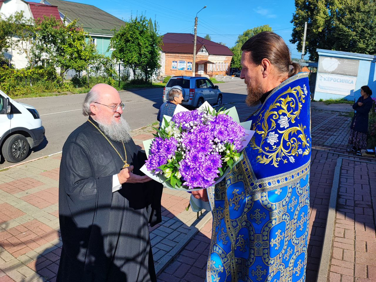 Перед началом богослужения архипастыря приветствовали глава администрации Сухиничского района Колесников Александр Степанович и глава городской администрации Андрей Иванович Голиков.
