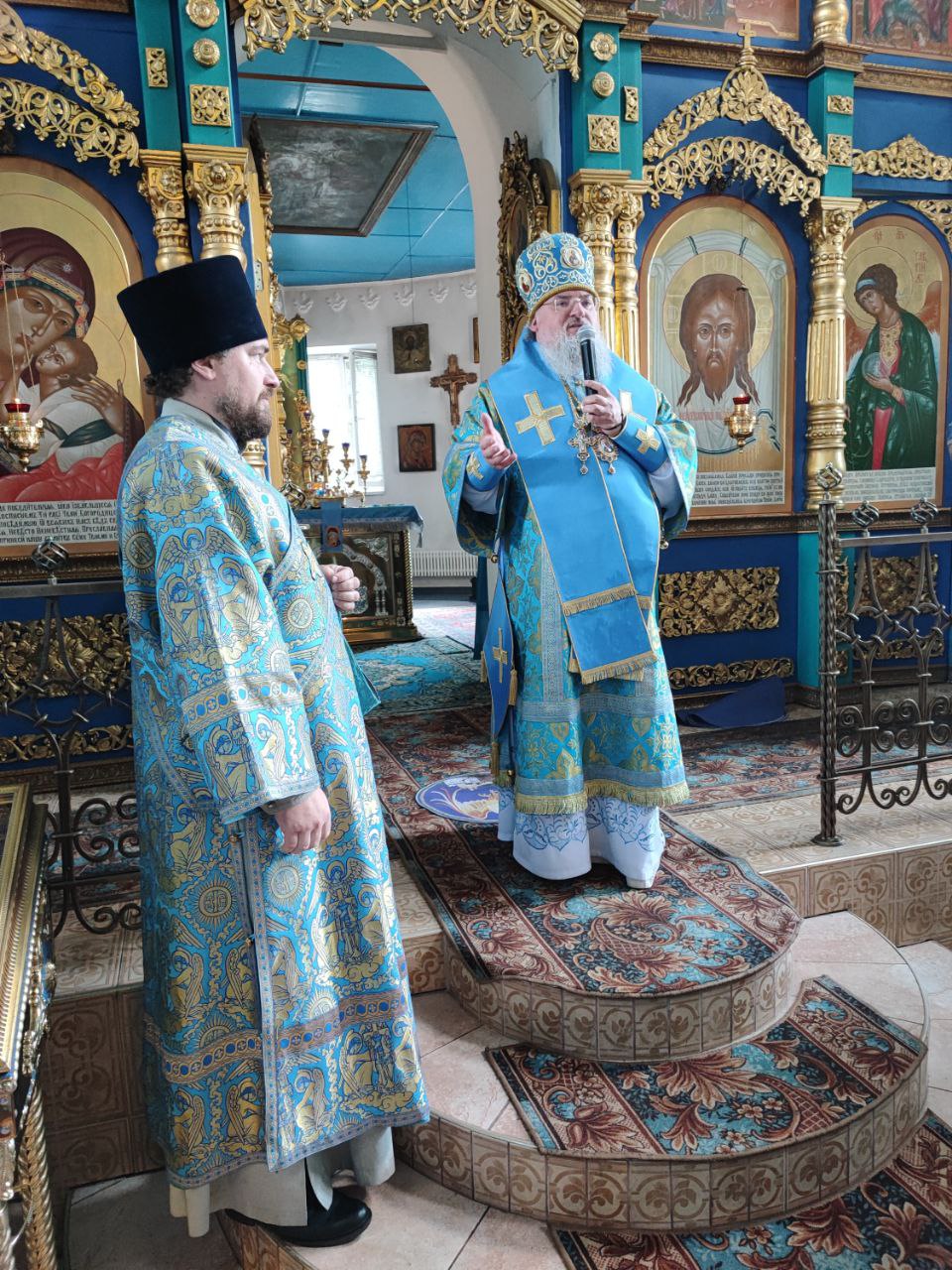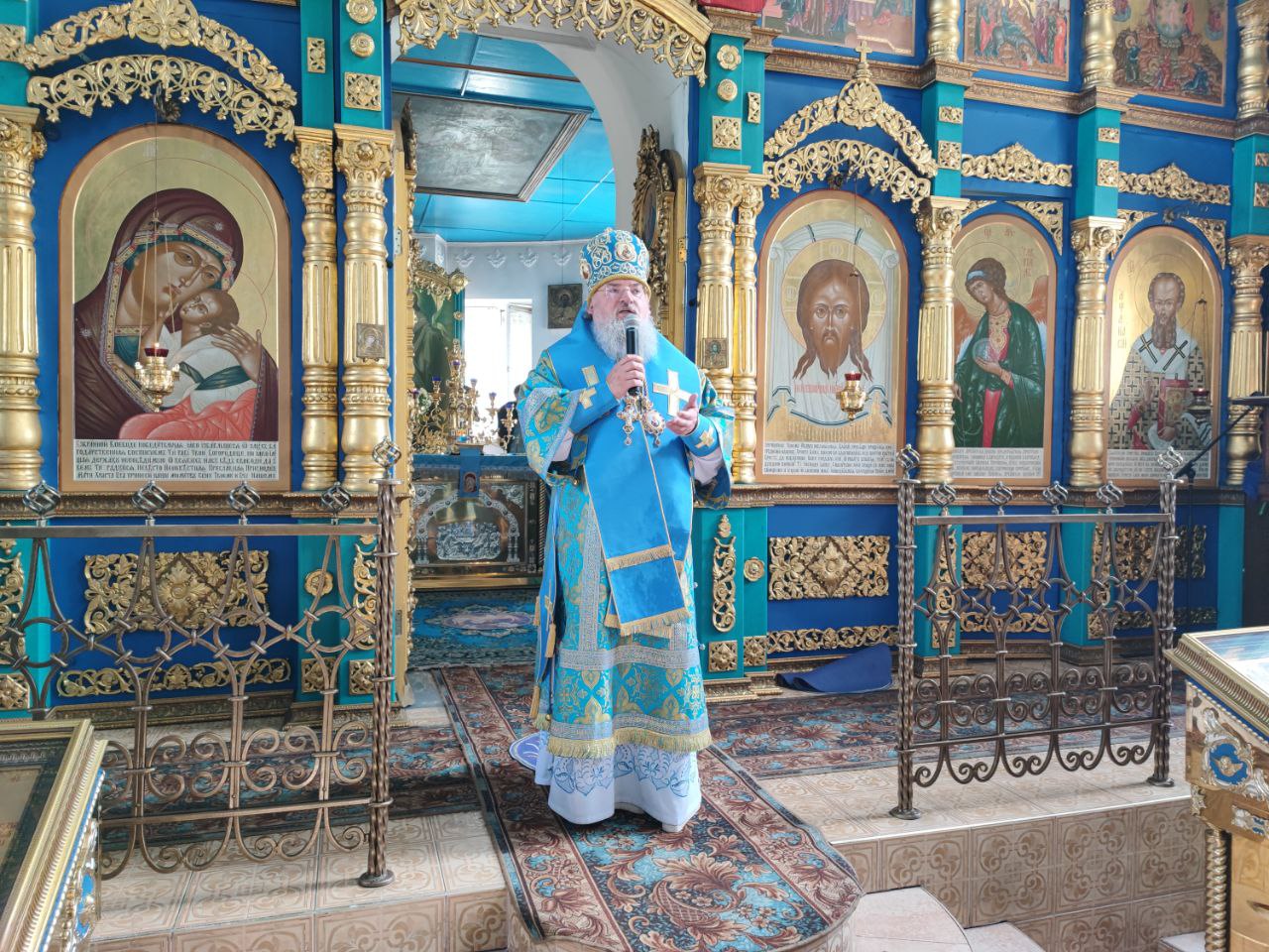 После отпуста литургии состоялся праздничный молебен и крестный ход вокруг храма. Завершив богослужение молитвой к Божией Матери владыка обратился к богомольцам с архипастырским словом.