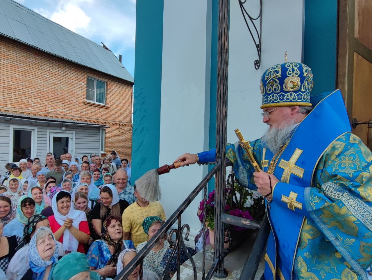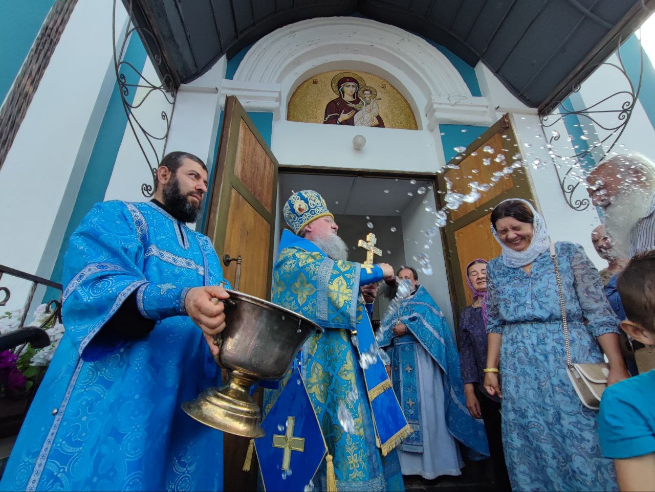По традиции после отпуста литургии состоялся праздничный молебен и крестный ход. Завершив богослужение молитвой к Божией Матери  владыка обратился к богомольцам с архипастырским словом.