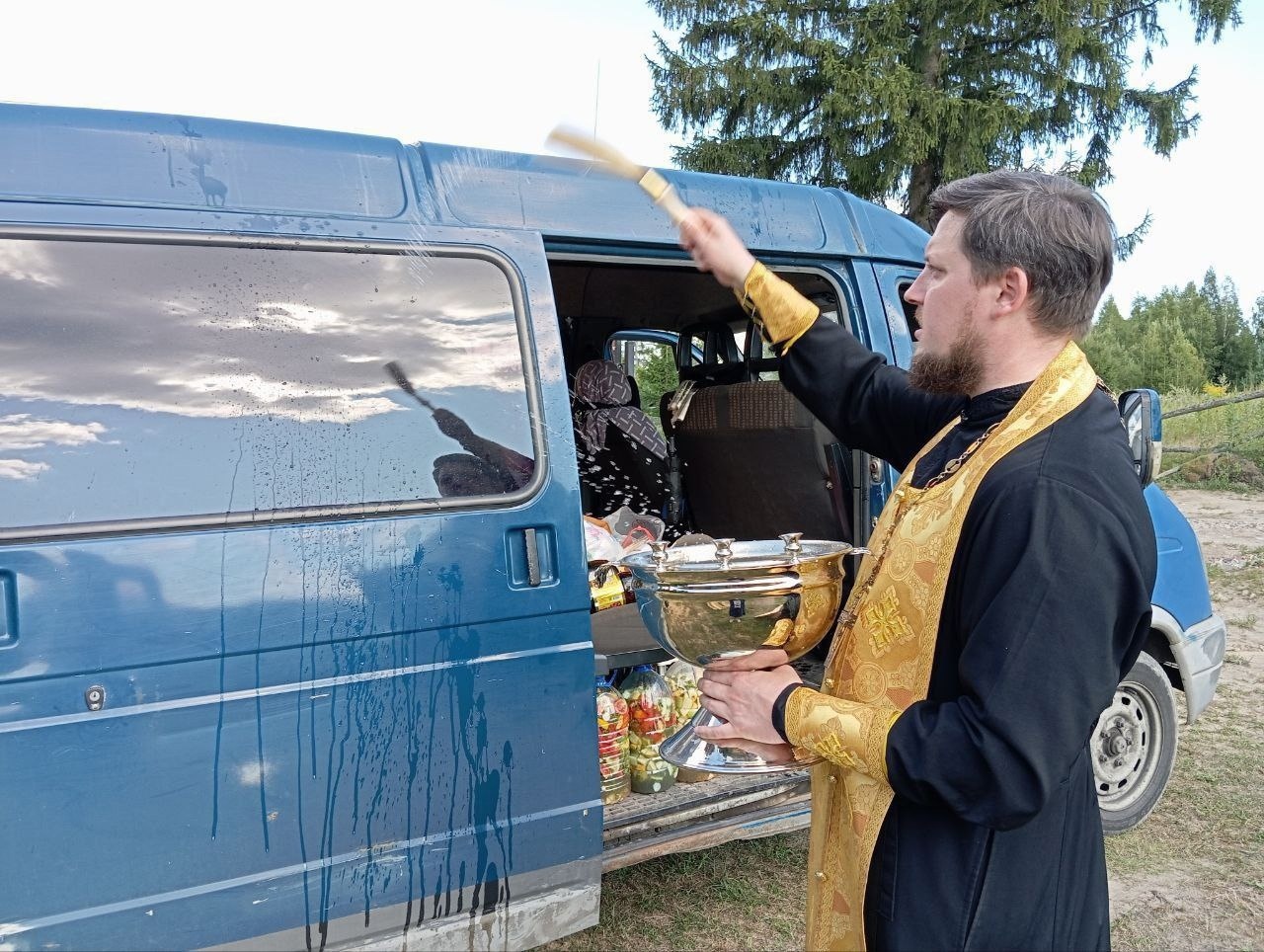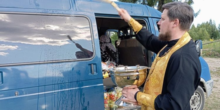 Настоятель храма «Живоносный Источник» иерей Иоанн Майоров освятил очередной груз, подготовленный волонтерами храма и неравнодушными жителями города Людиново