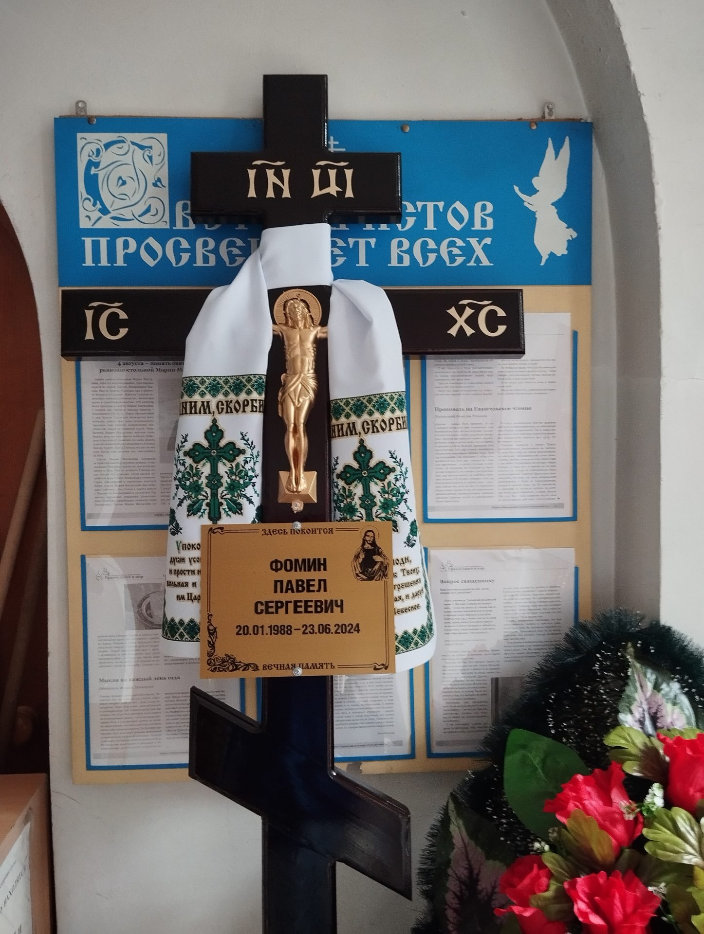 После чина отпевания со словами соболезнования к родным и близким обратился клирик храма отец Алексий. Он также призвал помнить о убиенном воине Павле, молится о его душе в храме.