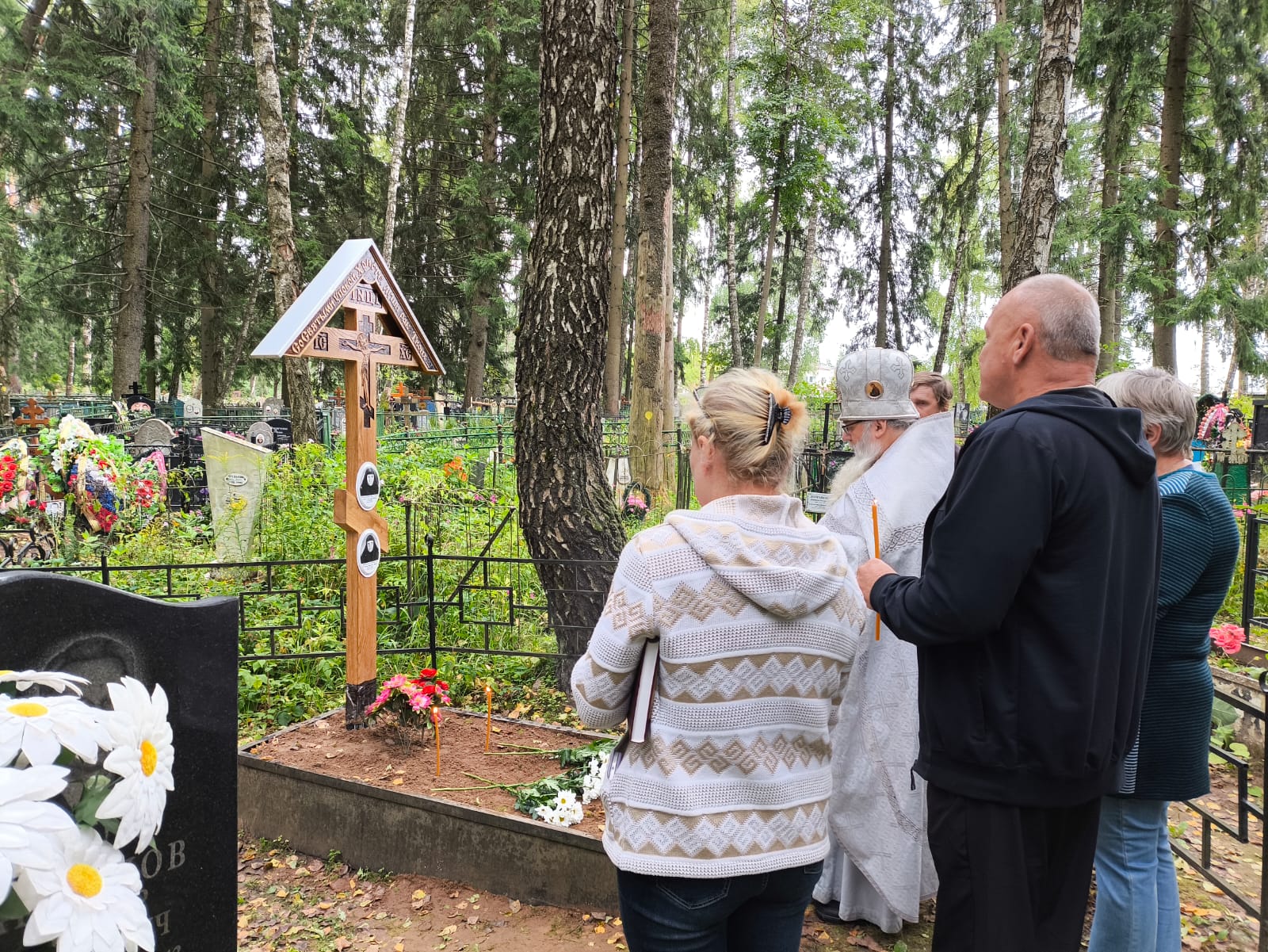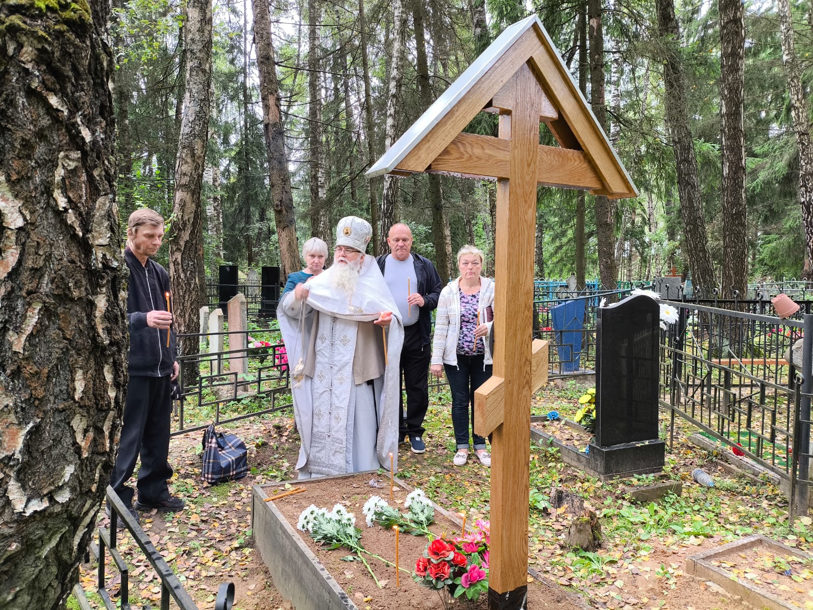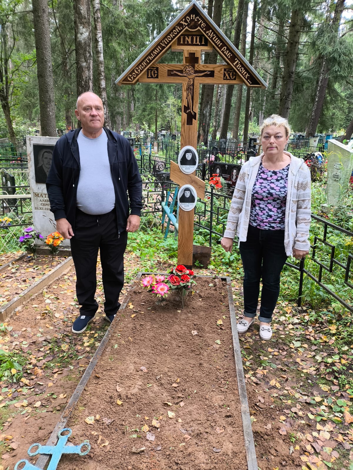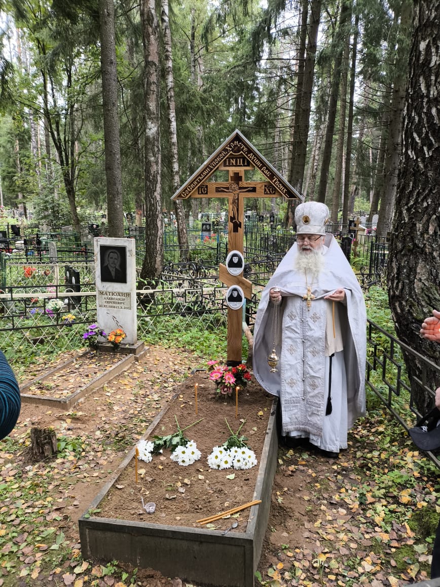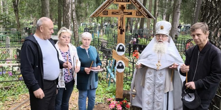 Установка нового креста на могиле монахинь в Кировском районе
