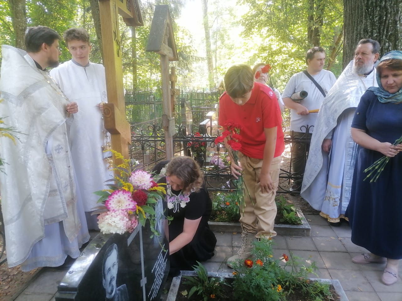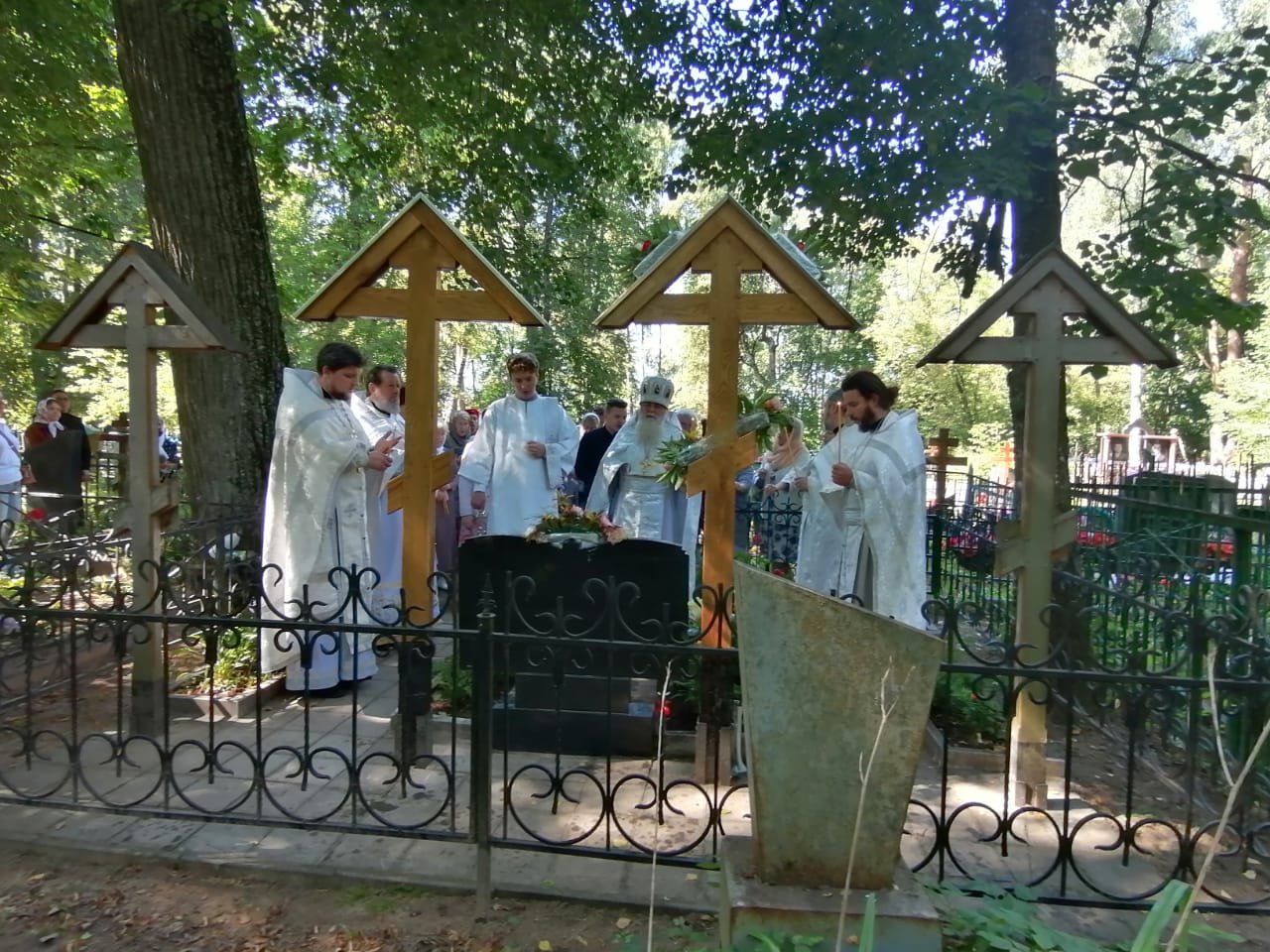 Затем, на могиле приснопамятного протоиерея отца Викторина (где рядом покоятся его родственники), отслужили панихиду о усопших. Отец Викторин похоронен на кладбище при храме святого праведного Лазаря Четверодневного в Людинове. Со священнослужителями на панихиде молились прихожане Казанского собора, Лазаревского храма и храма преподобного Сергия Радонежского, директор Городского музея Елена Башкирова, заместители директора средней школы №2 Ольга Клестова и Анжела Пинюкова, ученик школы Денис Гундаров (участник проекта «Хранители истории»), жители города Людиново.
