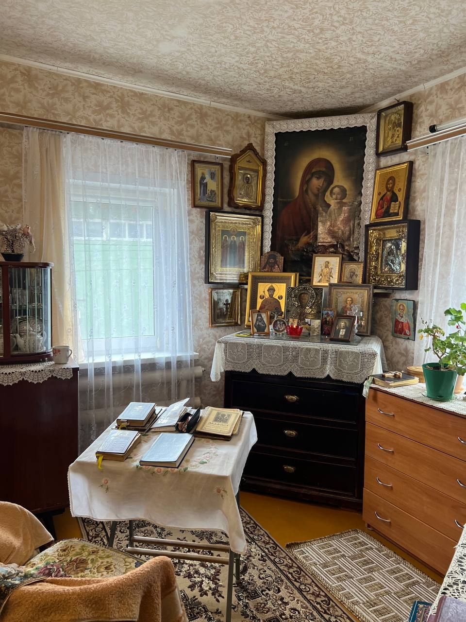 После богослужения в храме святителя Митрофана Воронежского в селе Нижние Прыски владыка, по традиции, посетил дом покойного настоятеля Преображенского храма отца протоиерея Леонтия и пообщался с его вдовой Тамарой Ивановной, которую, по обычаю застал за молитвой, пожелал ей крепкого здоровья и попросил ее молитв о Козельской епархии.