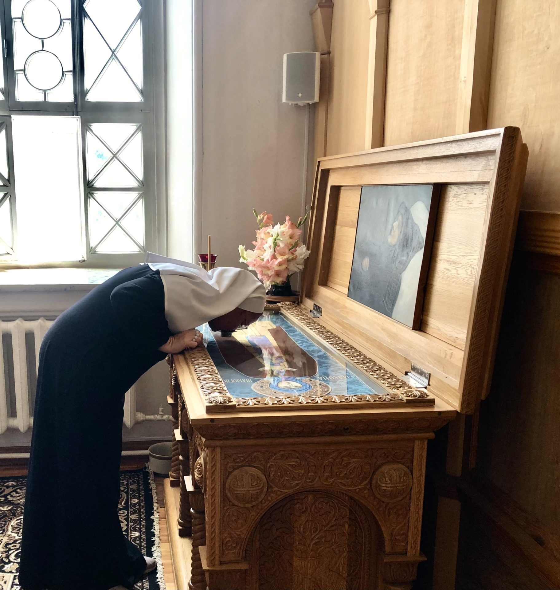 Сестры помолились в храме преподобного Амвросия Оптинского, устроенном на месте расположения дома, где провел последние дни жизни и почил великий старец.