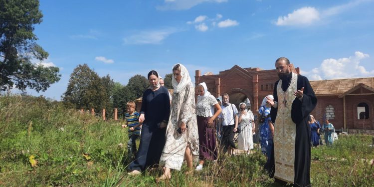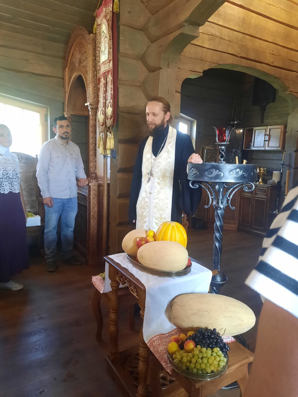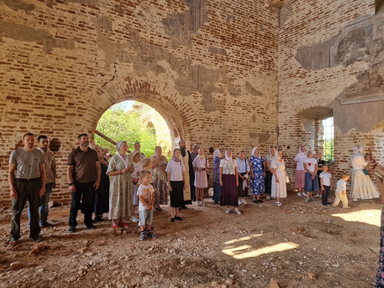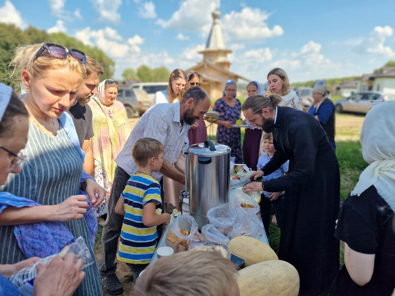 В праздничный день Преображения Господня прихожане храма Зачатия Иоанна Предтечи, расположенного в селе Губино, во главе с настоятелем, иереем Дионисием Капустиным, совершили поездку в строящийся Преображенский скит, находящийся в урочище Меренищи