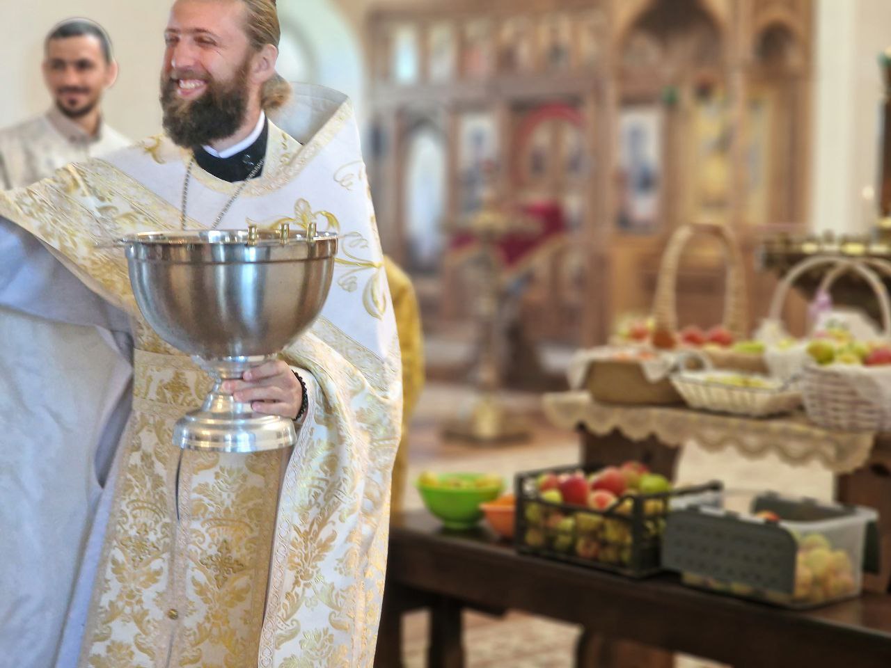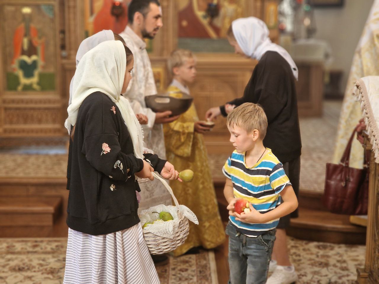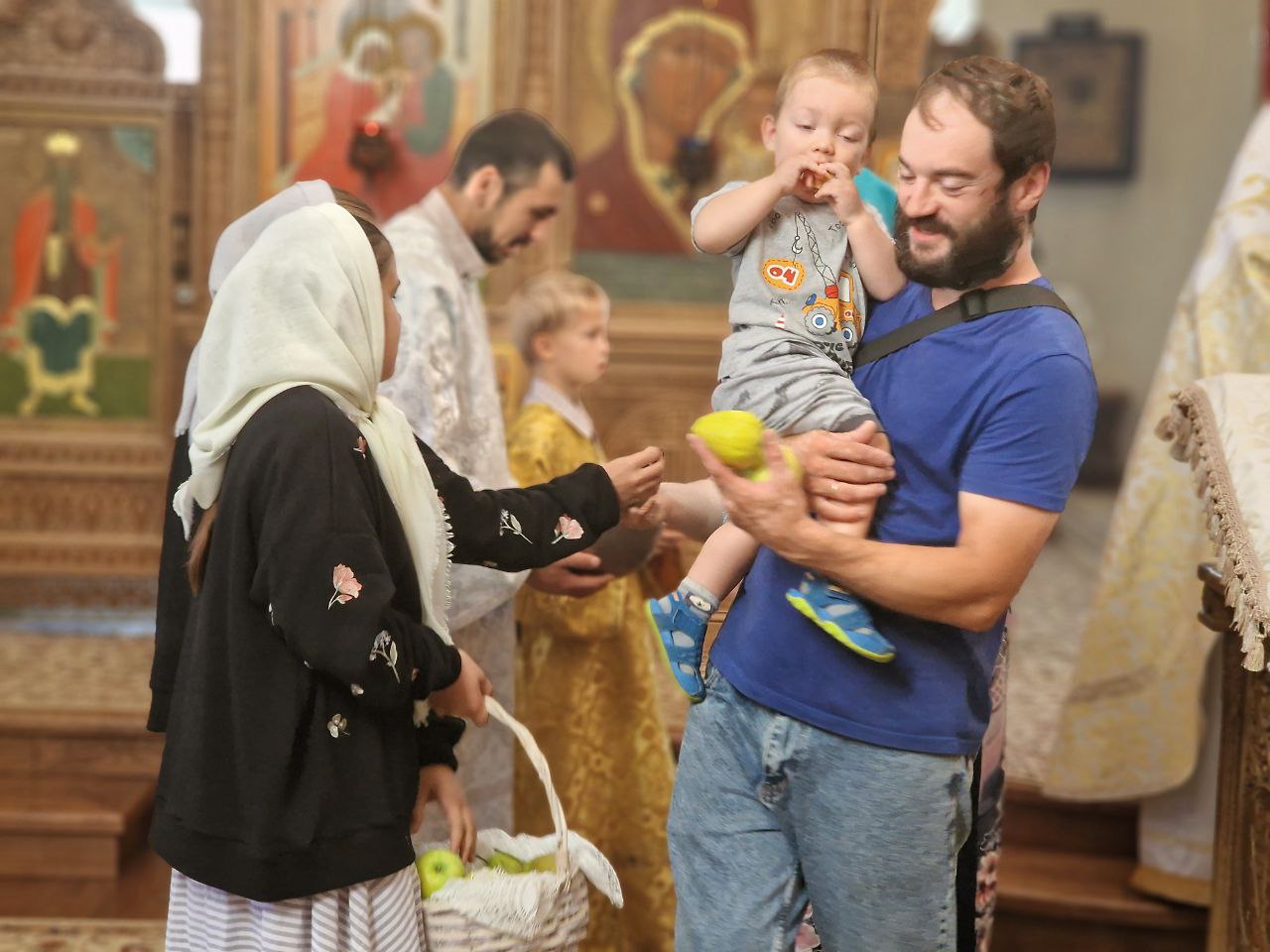 Затем прихожане отправились в храм иконы Божией Матери «Всех скорбящих Радость», где пропели молитвы и славословие Божией Матери. Там же, в Меренищах, в храме Преображения Господня был совершен благодарственный молебен Господу нашему Иисусу Христу. После него прихожане освятили плоды, среди которых были фрукты и виноград, и помазались освященным маслом.