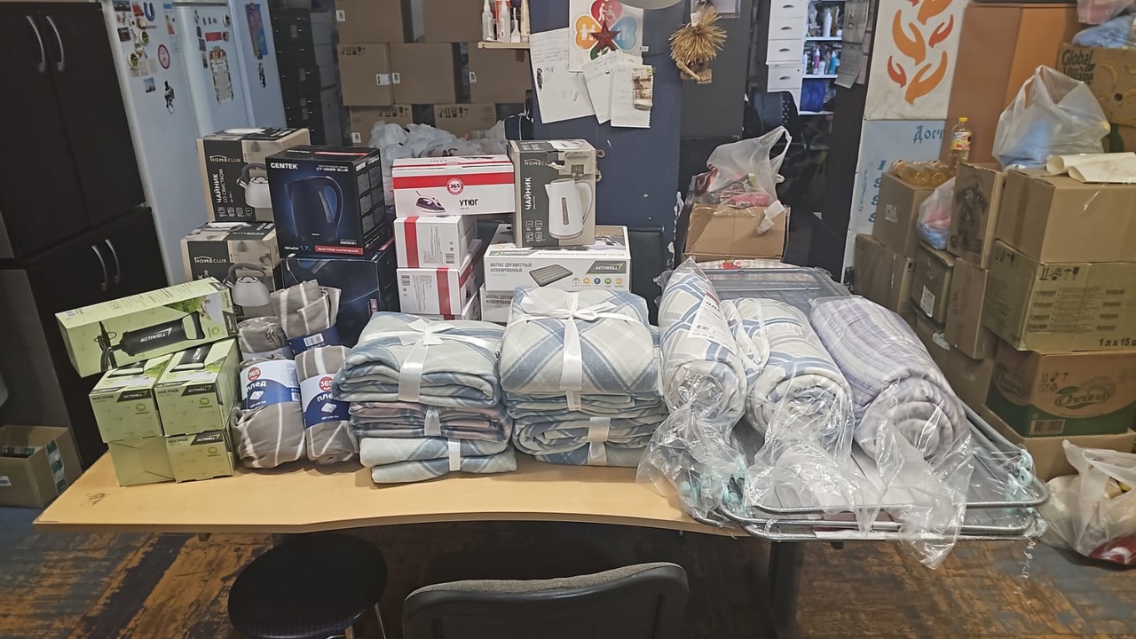 На деньги, собранные коллегами, Шелкунова Элла закупила запрашиваемое переселенцами постельное белье, сушилки для белья, одеяла, пледы, утюги, надувные матрасы для обустройства спальных мест.