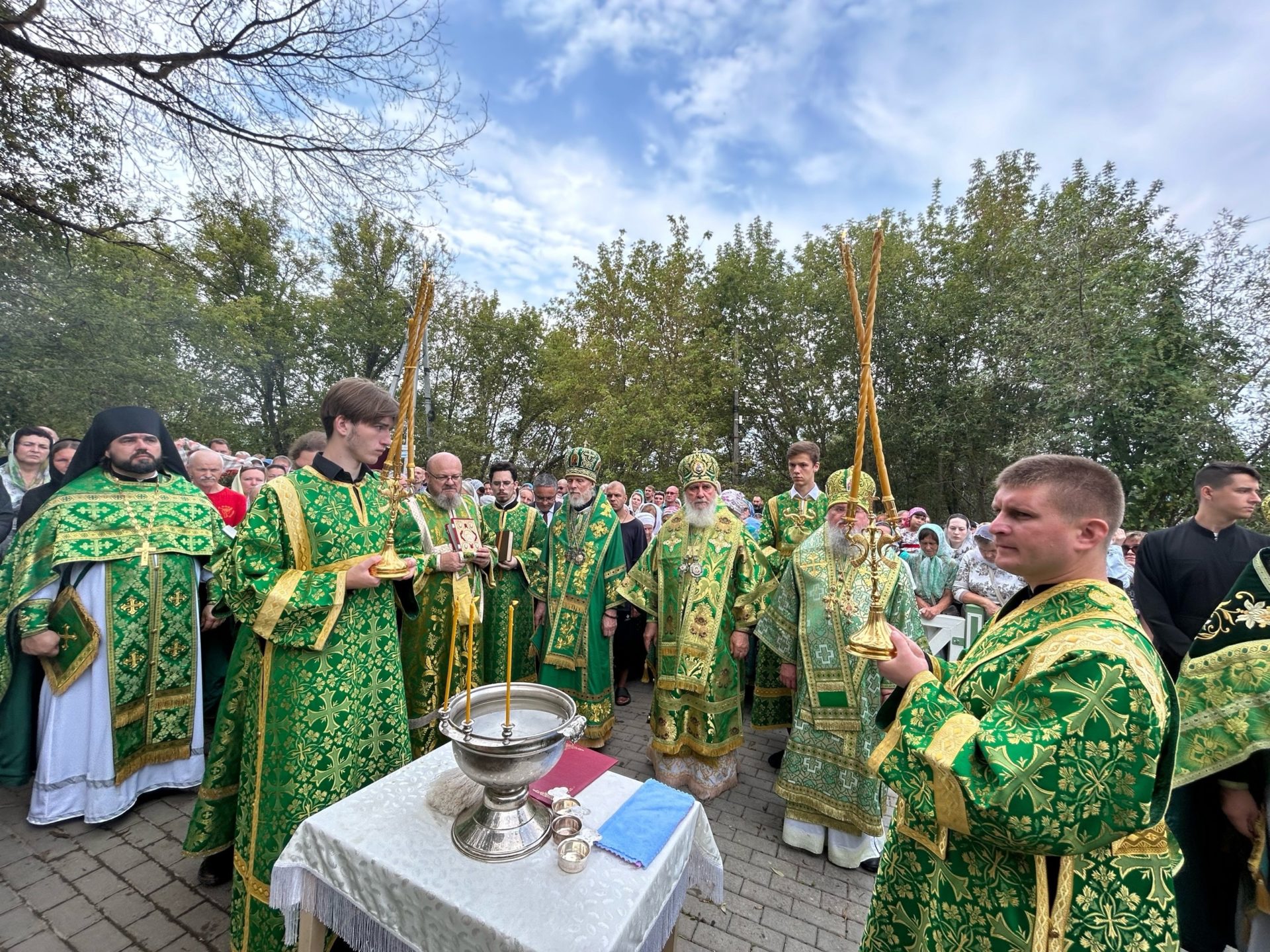 По отпусте литургии духовенство и миряне совершили крестный ход на святой источник, где было совершено малое освящение воды. После вознесения молитвы святому праведному Лаврентию митрополит Климент и сослужащие ему архипастыри окропили богомольцев святой водой.