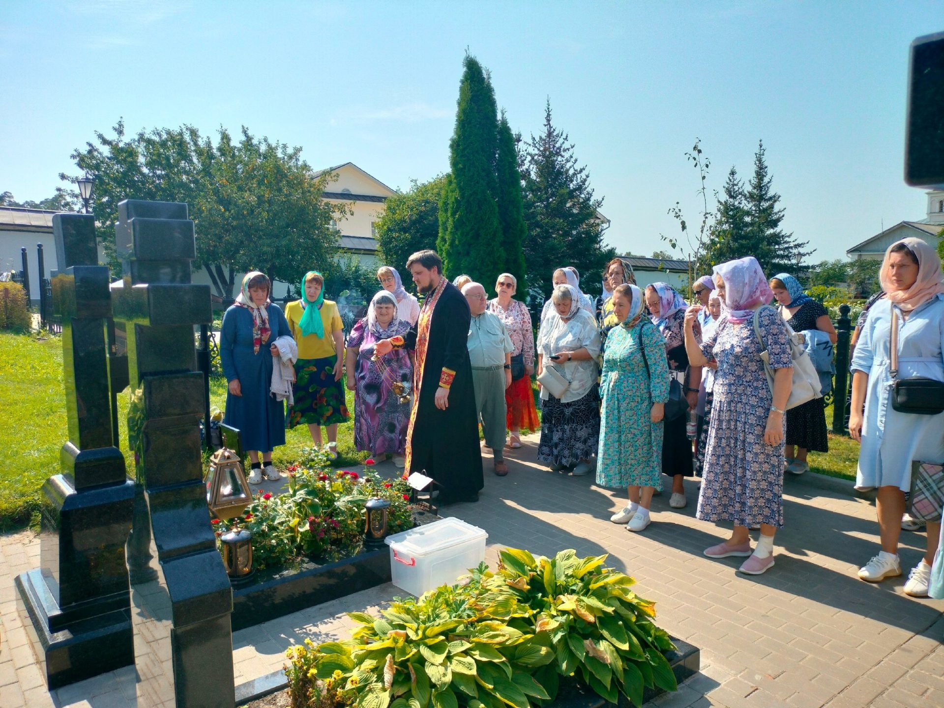 После экскурсии отец Иоанн совершил литию на могиле приснопоминаемого иеродиакона Илиодора (Гариянц). А после в часовне убиенных монахов: иеромонаха Василия (Рослякова), иноков Ферапонта (Пушкарёва) и Трофима (Татарникова) священник помазал всех елеем от лампад, горящих на их могилах.