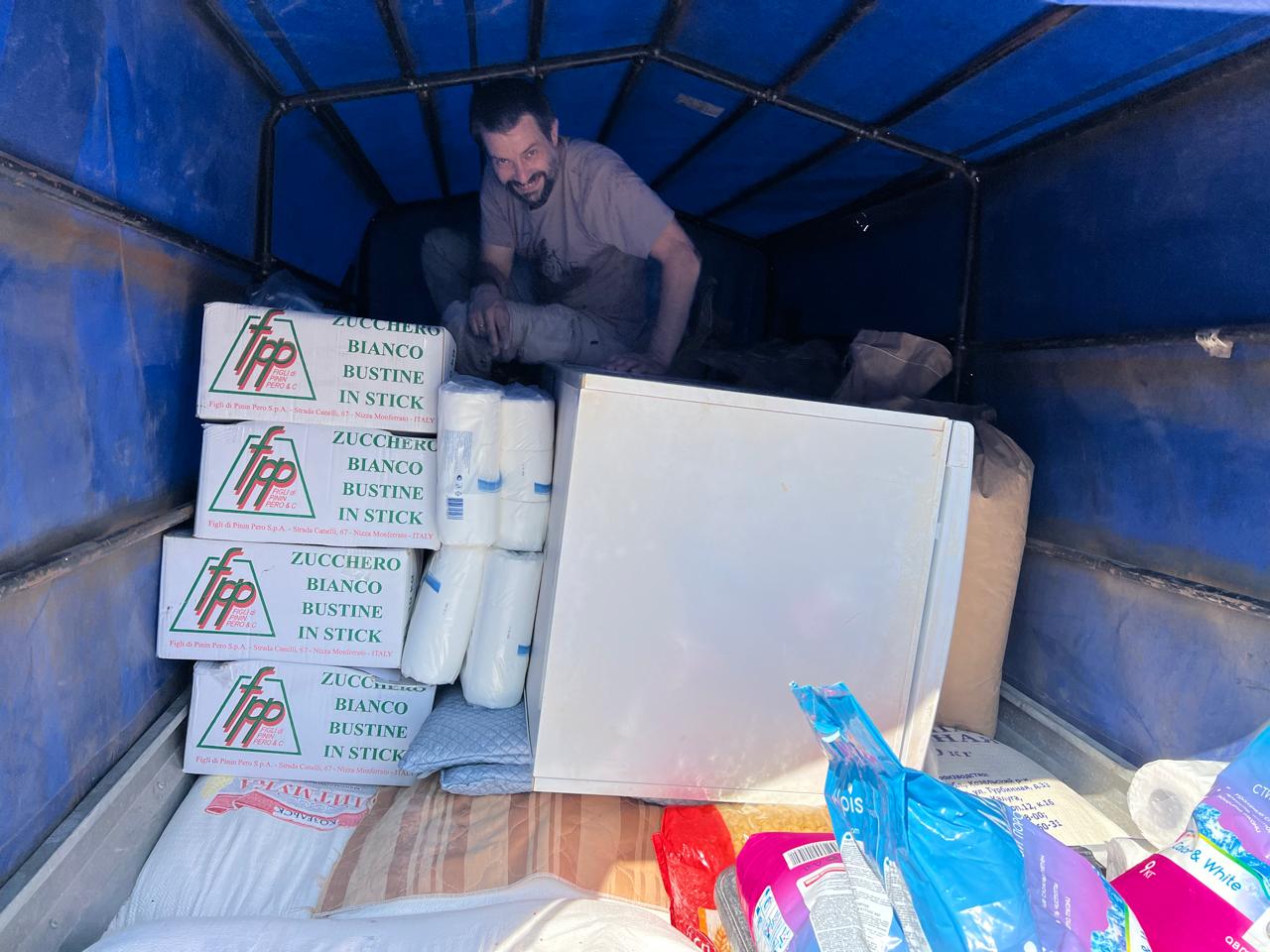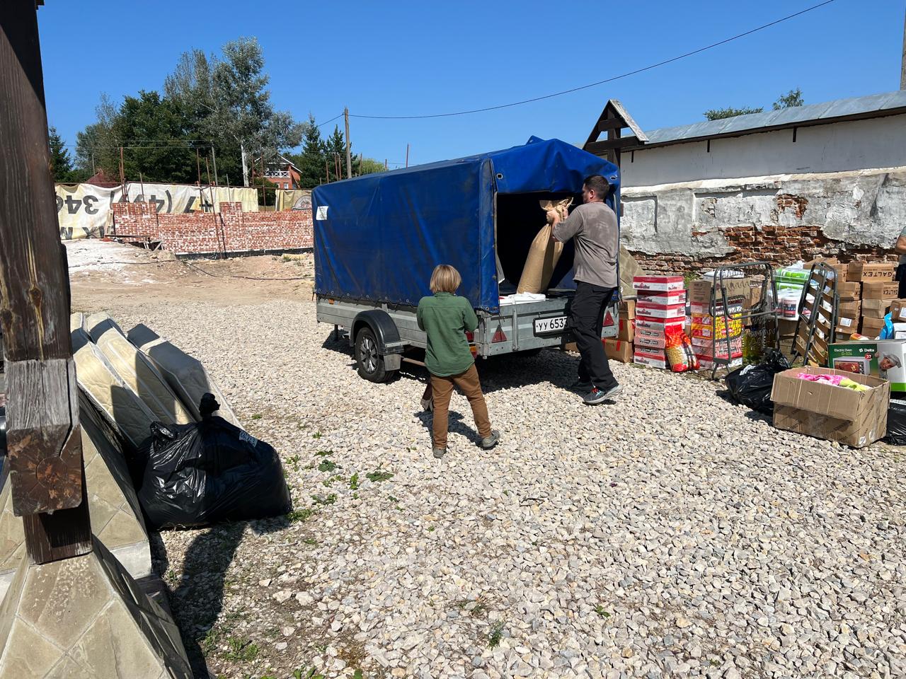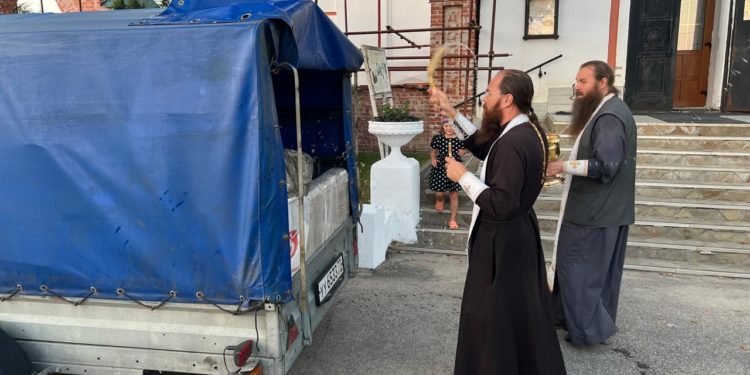 После воскресного богослужения произошла загрузка машины с прицепом, а вечером, помолившись, прихожане водители отправились в путь.