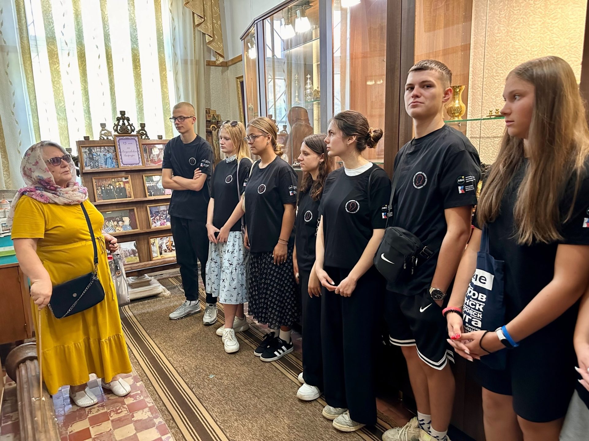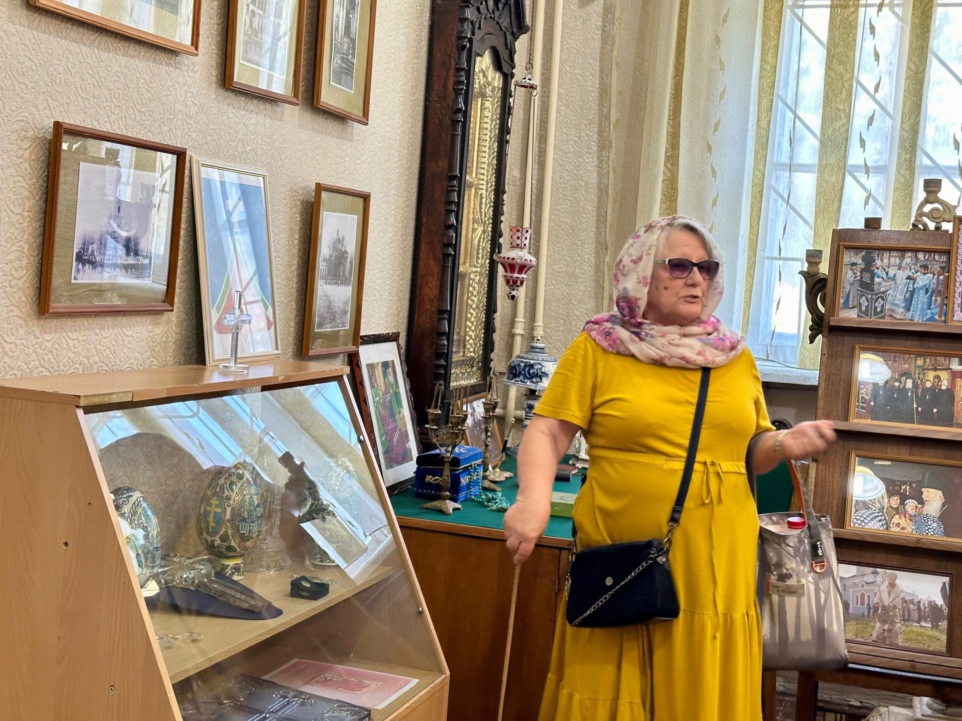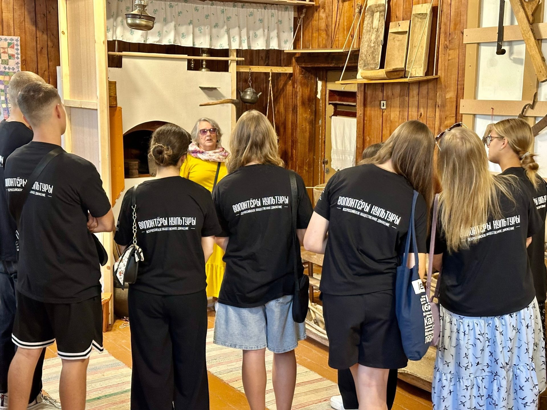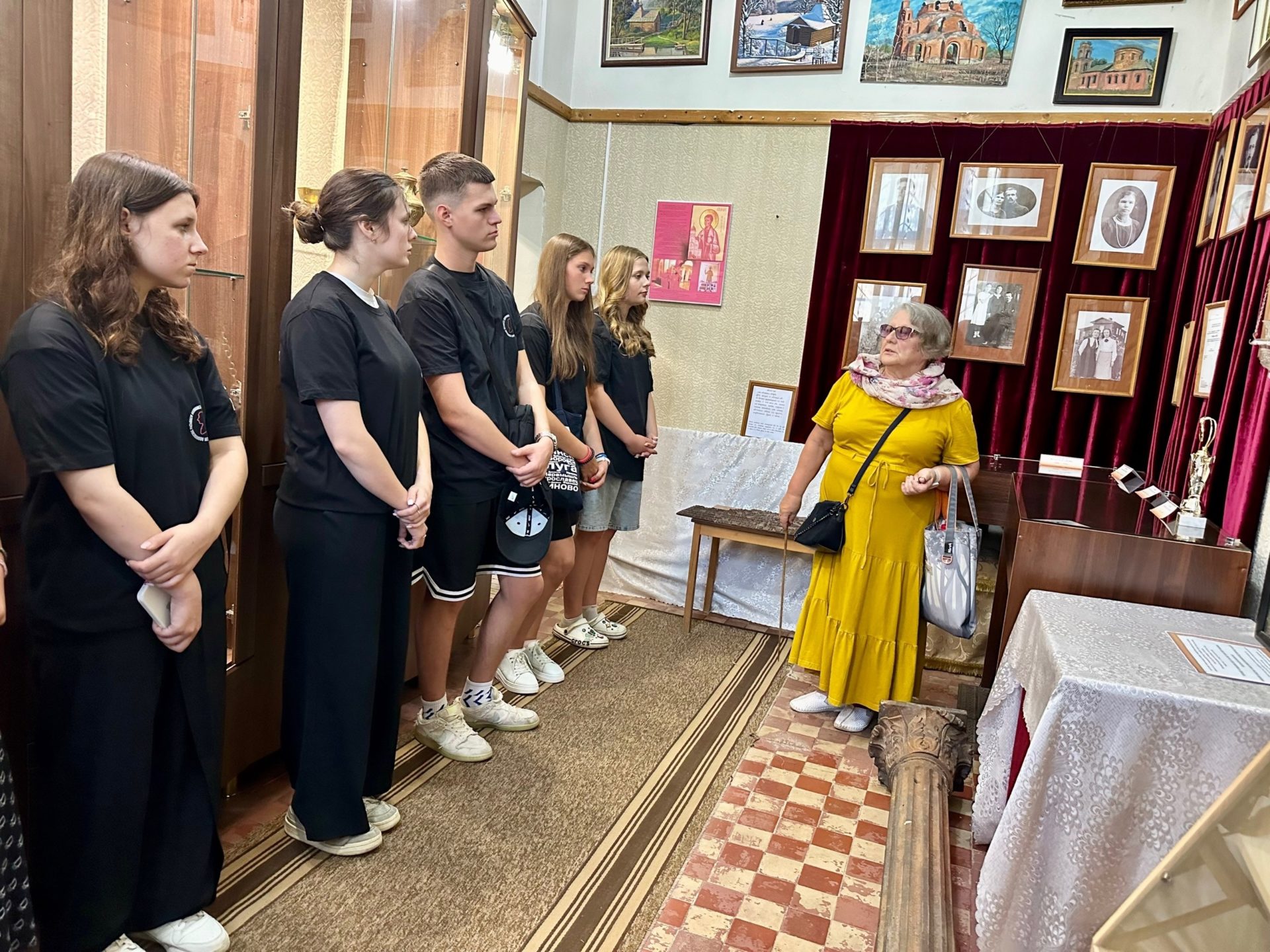 Волонтёры посетили несколько экспозиций: «Богослужебные старопечатные книги», стационарную выставку старинной повседневной и праздничной одежды жителей юга Калужской области церковно-краеведческого музея, а также музей с экспозициями старинного русского народного быта и церковной утвари, облачения и богослужебных книг.