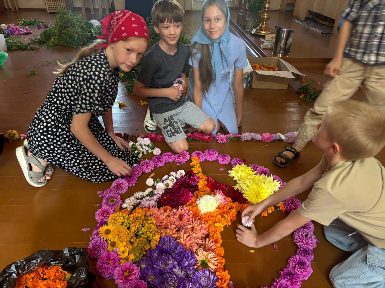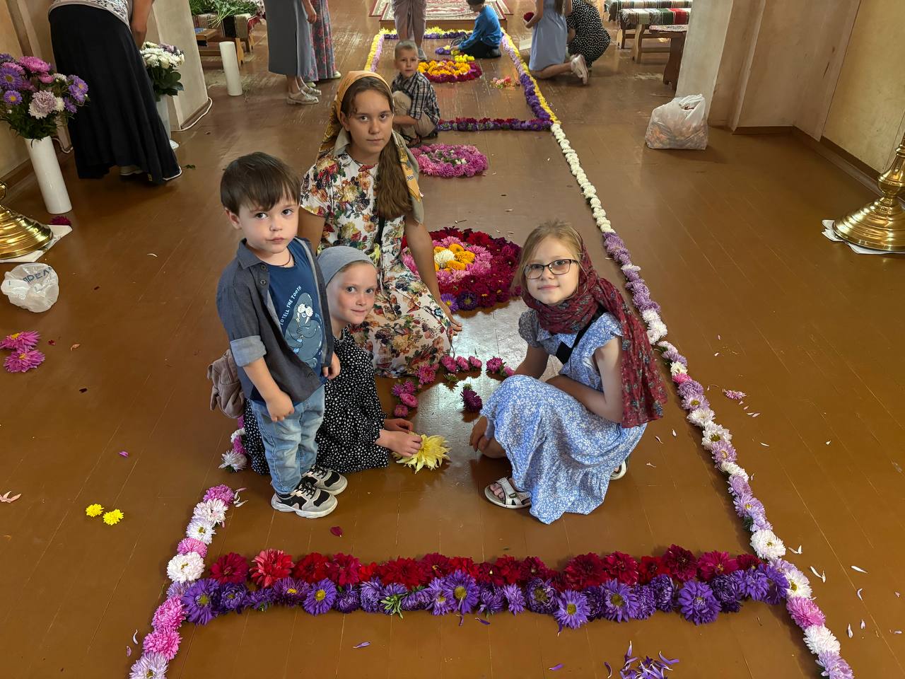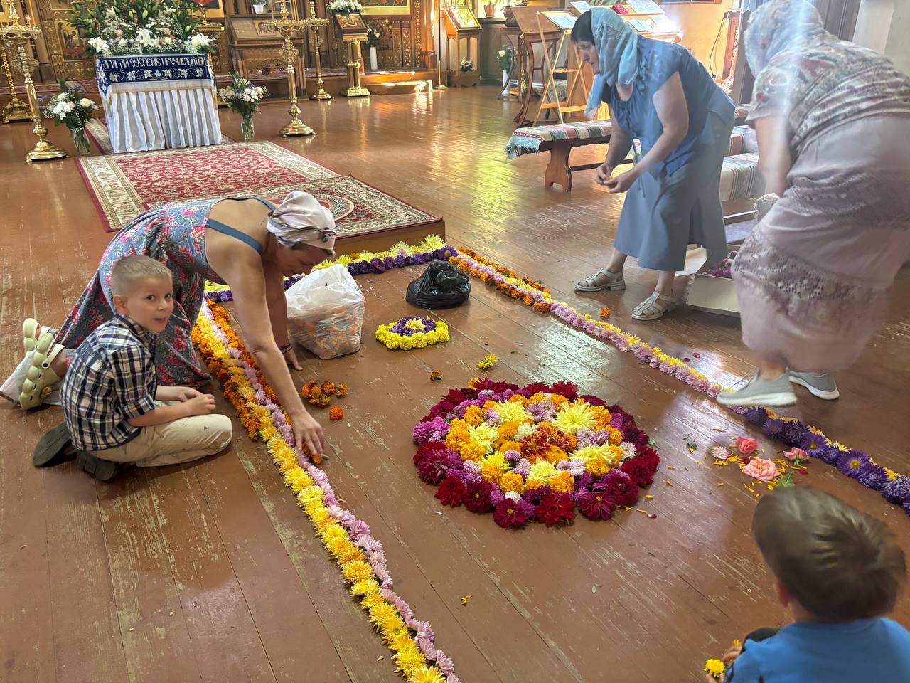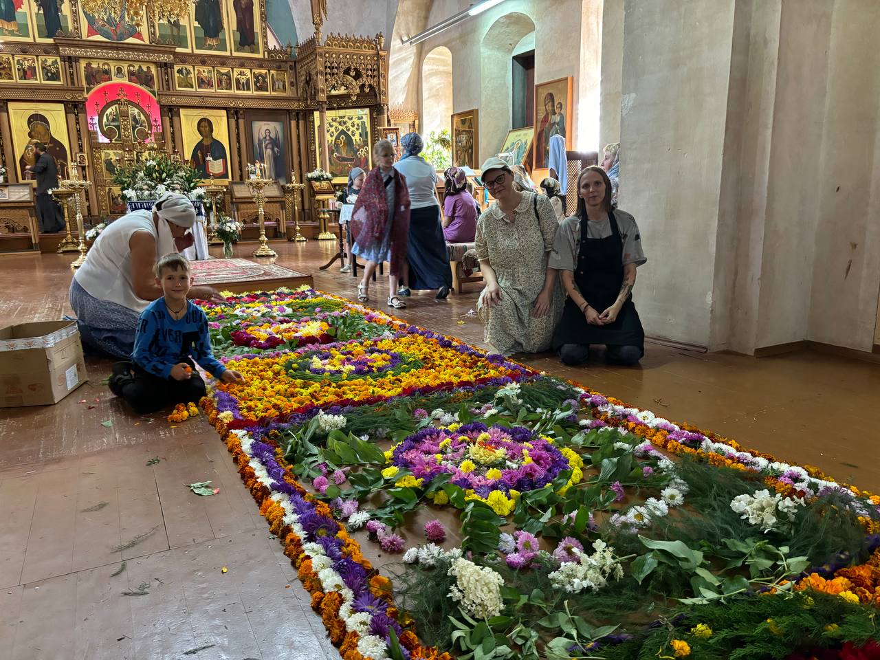 Накануне праздника Успения Пресвятой Богородицы, прихожане собора и воспитанники Воскресной школы собрались в храме для украшения дорожки для Пресвятой Богородицы. Для этого прихожане собора принесли в храм большое количество живых домашних цветов, и сложили из них дорожку, по которой священнослужители за всенощным бдением с чином Погребения пронесут плащаницу Пресвятой Богородицы.