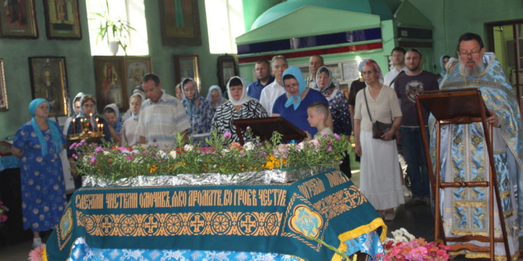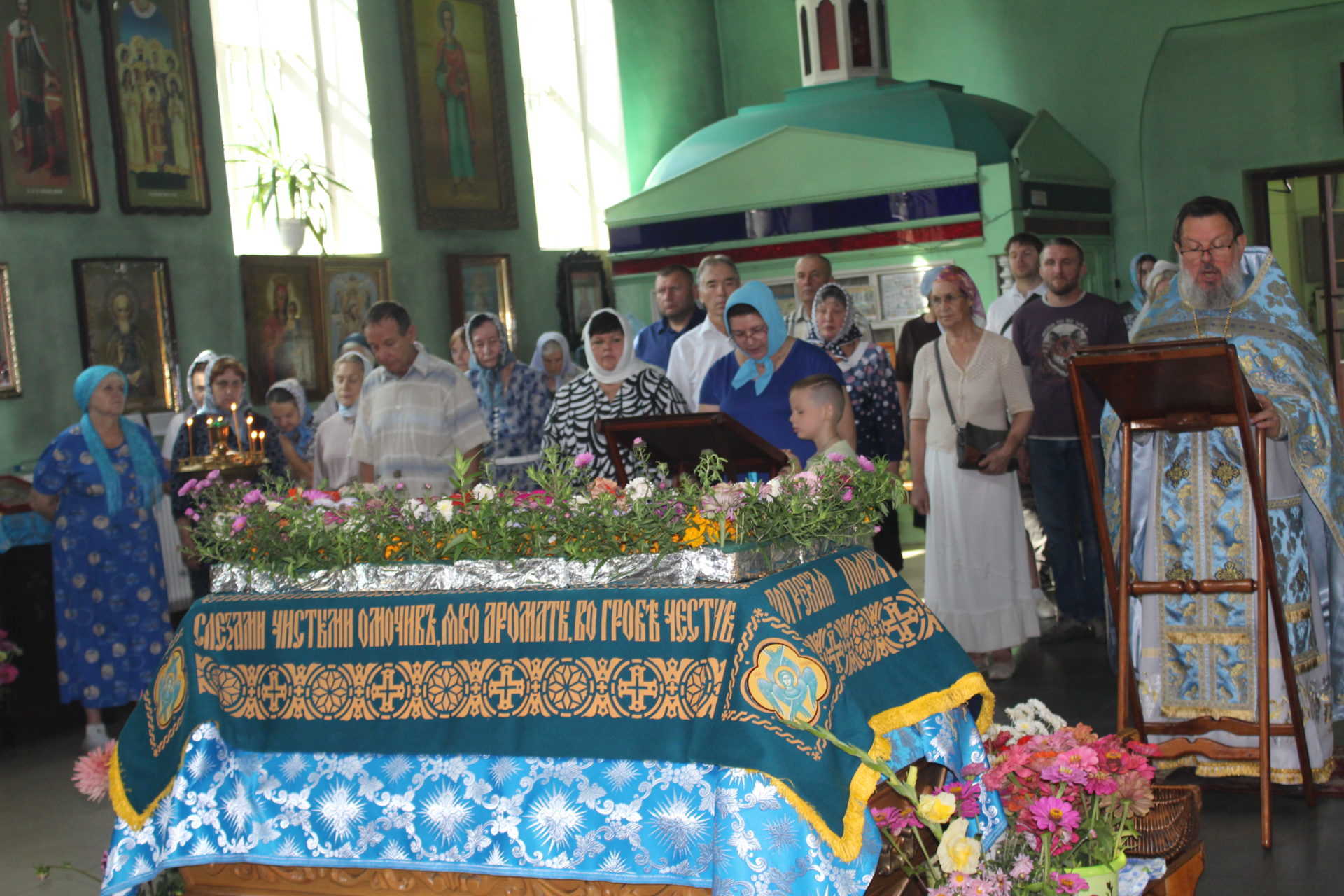 28 августа. Успение Пресвятой Богородицы. В этот день Святая Церковь воспоминает праведную кончину Божией Матери — событие, окрашенное одновременно печалью об окончании жизненного пути Предстательницы за род человеческий и радостью о соединении Пречистой Матери Господней с Сыном Своим. В этот день в храме преподобного Сергия Радонежского города Людиново настоятелем храма протоиереем Василием Биляк была отслужена праздничная Божественные литургии, а накануне праздника Успения Пресвятой Богородицы было совершено всенощное бдение, вовремя которого из алтаря износится на середину храма плащаница и полагается на гробницу. На литургии были вознесены особые прошения и молитва о Святой Руси. По благословению Святейшего Патриарха Московского и всея Руси Кирилла эта сугубая молитва совершается во всех храмах Русской Православной Церкви за каждым богослужением. За Божественной литургией отец Василий обратился к прихожанам со словами поздравления: «Сегодня Успение Пресвятой Богородицы. Пусть этот день станет светлой широкой дорогой к вере. Пусть Её жизненный путь и святые молитвы согревают и наполняют благодатью души, пусть даруют терпение, понимание и доброту помыслов всем людям на земле. Царица Небесная жива, Она предстоит пред Престолом Сына Своего и молится за всех нас». После Божественной литургии был совершен чин Погребение Божией Матери с крестным ходом и праздничный молебен.