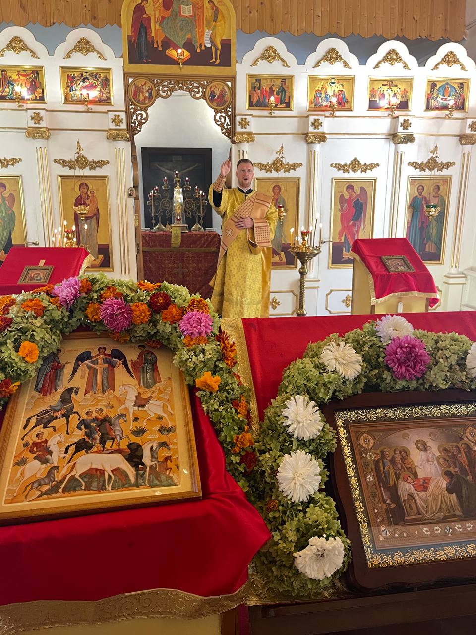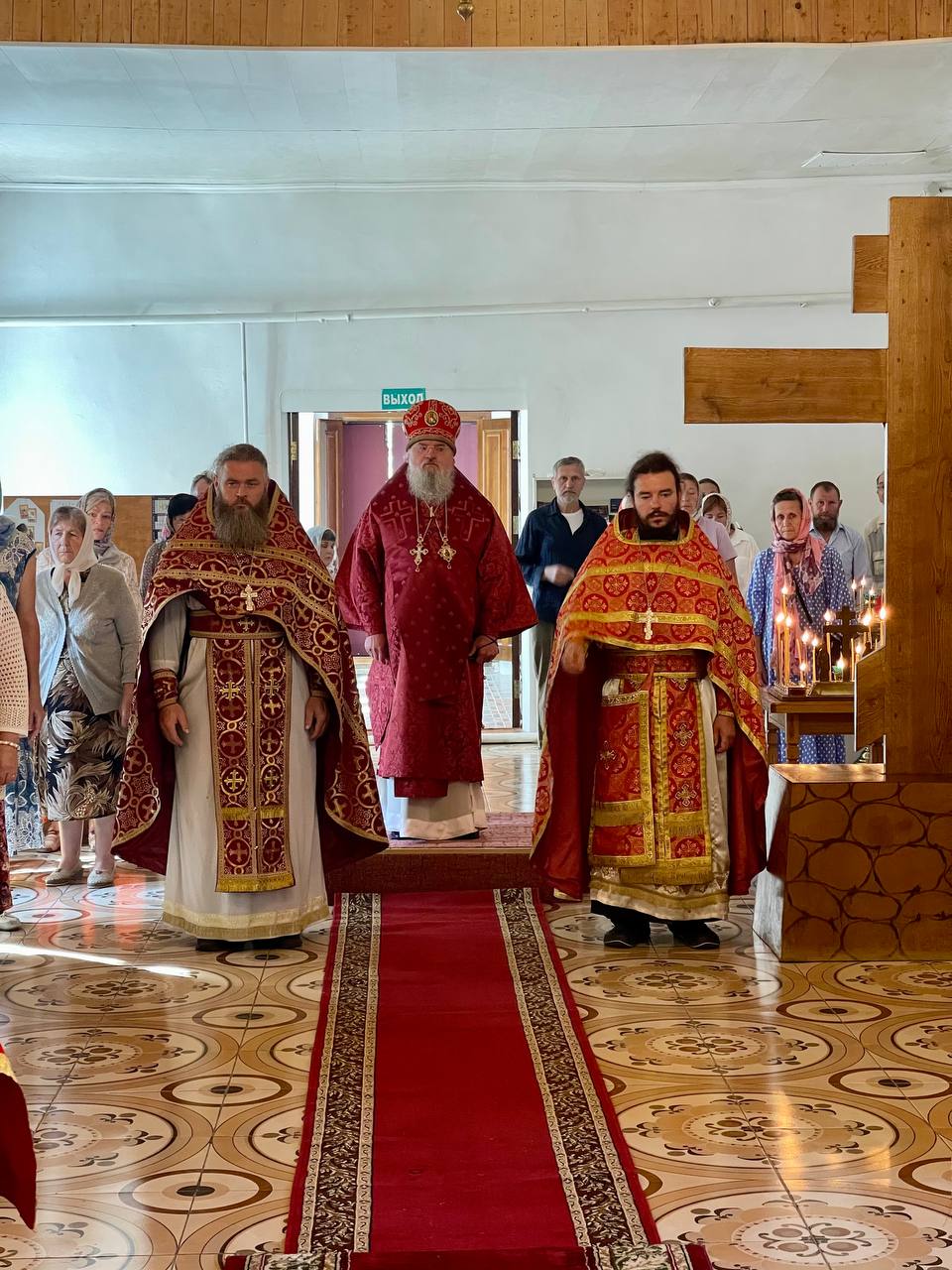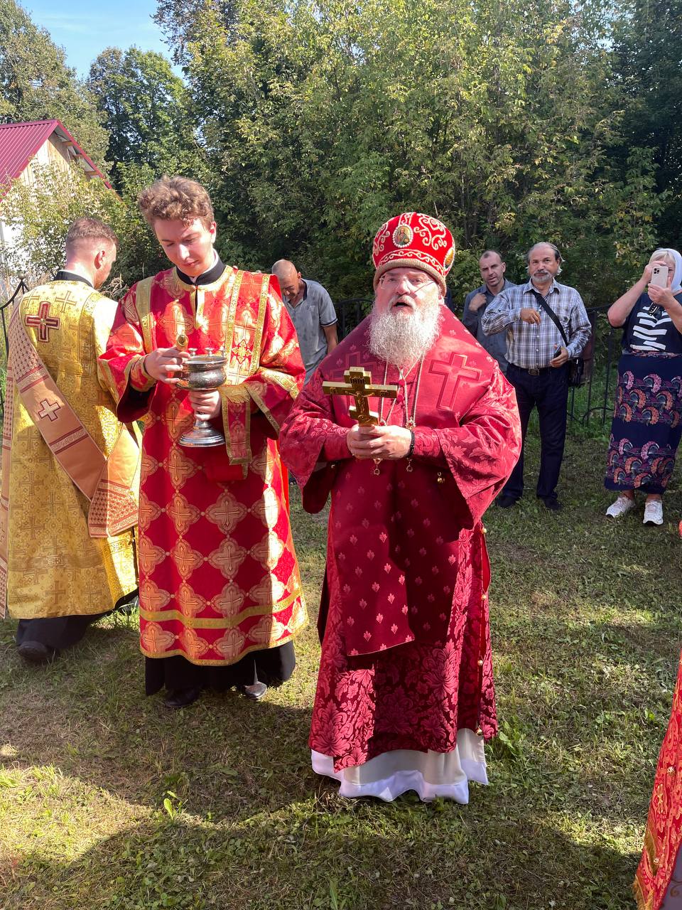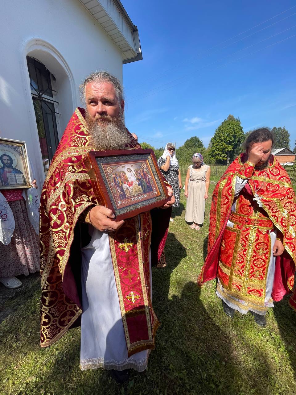 31 августа. Память святых мучеников Флора и Лавра. Епископ Козельский и Людиновский Никита совершил Божественную литургию в храме святых мучеников Фрола и Лавра в селе Зикеево Жиздринского района. Преосвященному владыке сослужили: протоиерей Михаил Карпенко, протоиерей Антоний Хатунцев, иеромонах Сергий (Тимофеев) – настоятель храма, иерей Николай Безручкин, иерей Алексий Скрипкин, диакон Евгений Ковригин и диакон Никита Агарев. На литургии были вознесены особые прошения и молитва о Святой Руси. По благословению Святейшего Патриарха Московского и всея Руси Кирилла эта сугубая молитва совершается во всех храмах Русской Православной Церкви за каждым богослужением. По отпусте литургии священнослужители совершили праздничный молебен святым мученикам Фролу и Лавру и крестный ход вокруг храма, в завершении которого, вознеся молитву угодникам Божиим, владыка обратился к богомольцам с проповедью. Архипастырь поздравил с праздником участников богослужения, поблагодарил настоятеля иеромонаха Сергия (Тимофеева) и вручил ему святую просфору и икону Пресвятой Богородицы в ознаменовании шестидесятипятилетия со дня рождения.