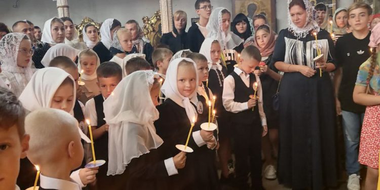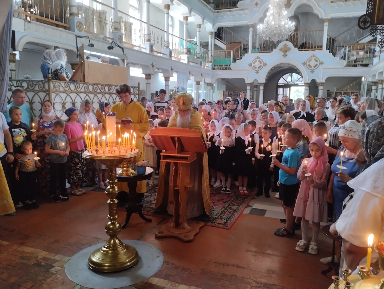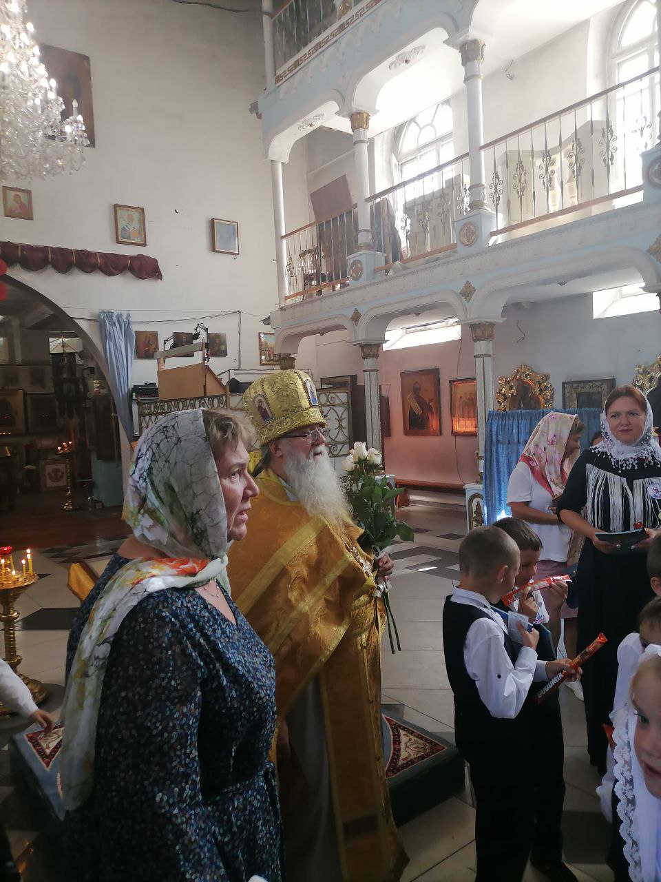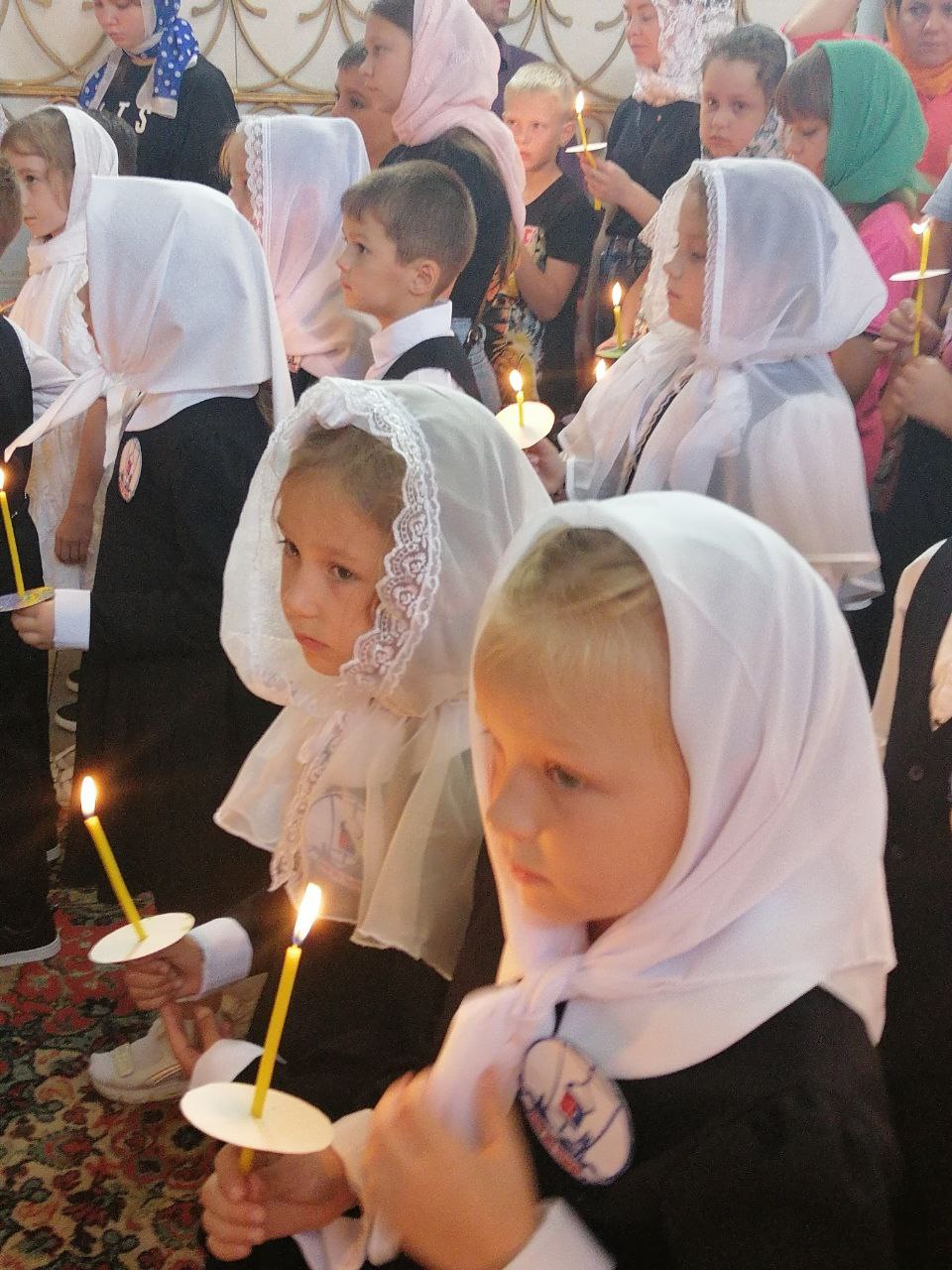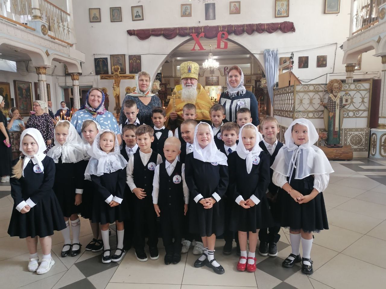Дети пришли на молебен в храм Божий нарядно одетые, в красивой школьной форме. После молебна отец Алексий от души поздравил всех с новым учебным годом. А будущим школьникам, после общего фото, подарил сладости, иконочки Божией Матери, именуемой «Людиновская» и книги «Капелька добра».