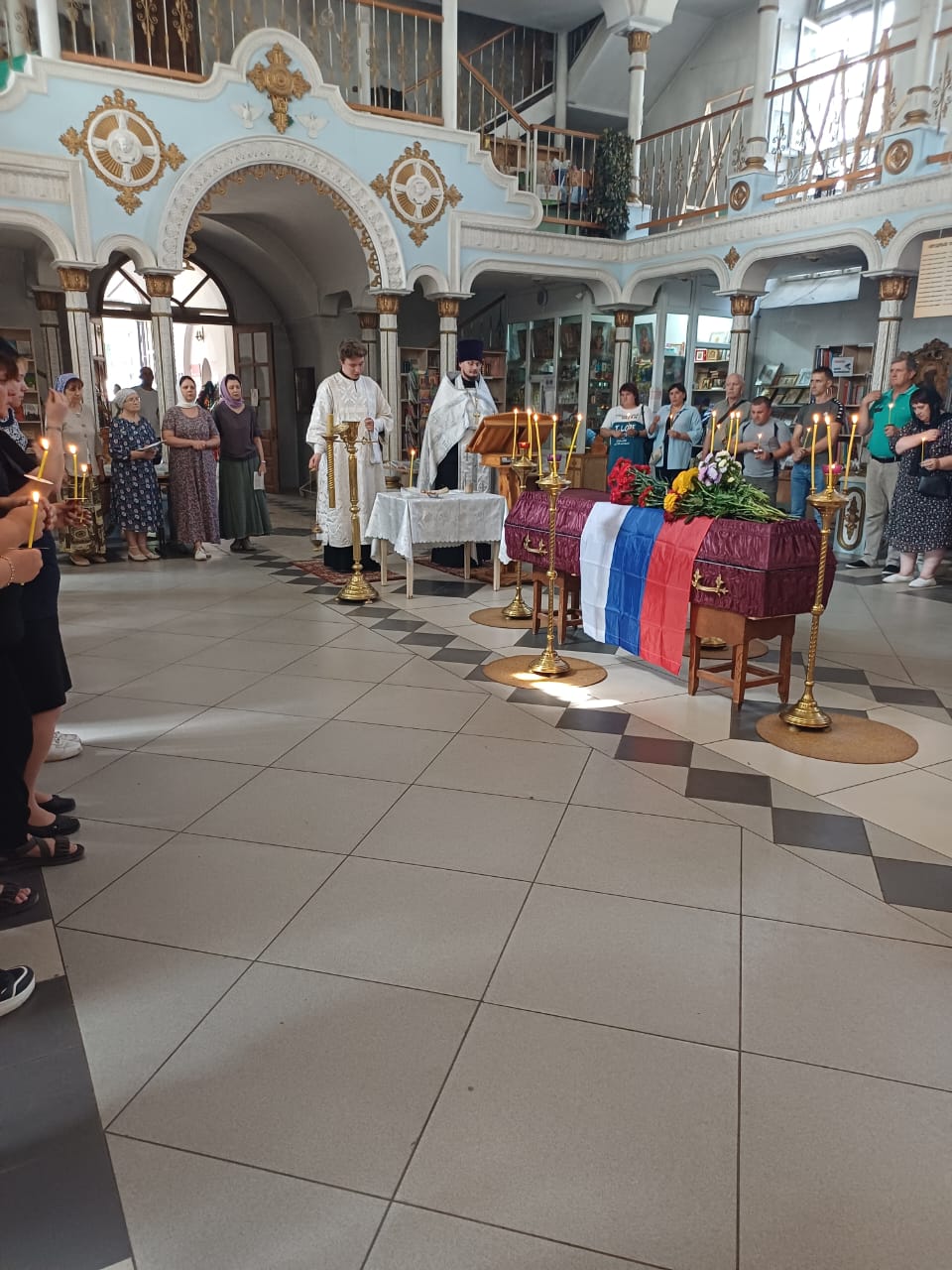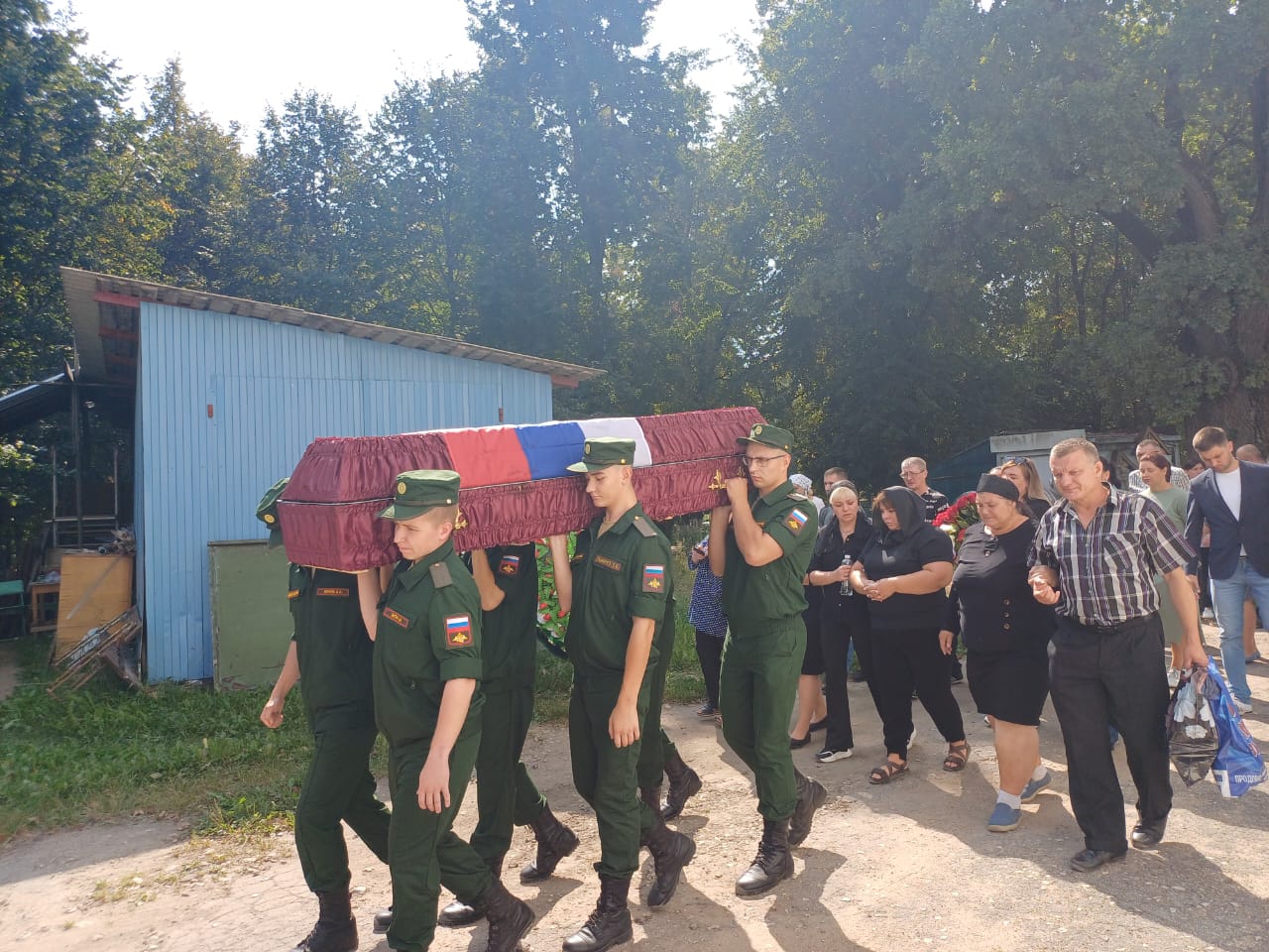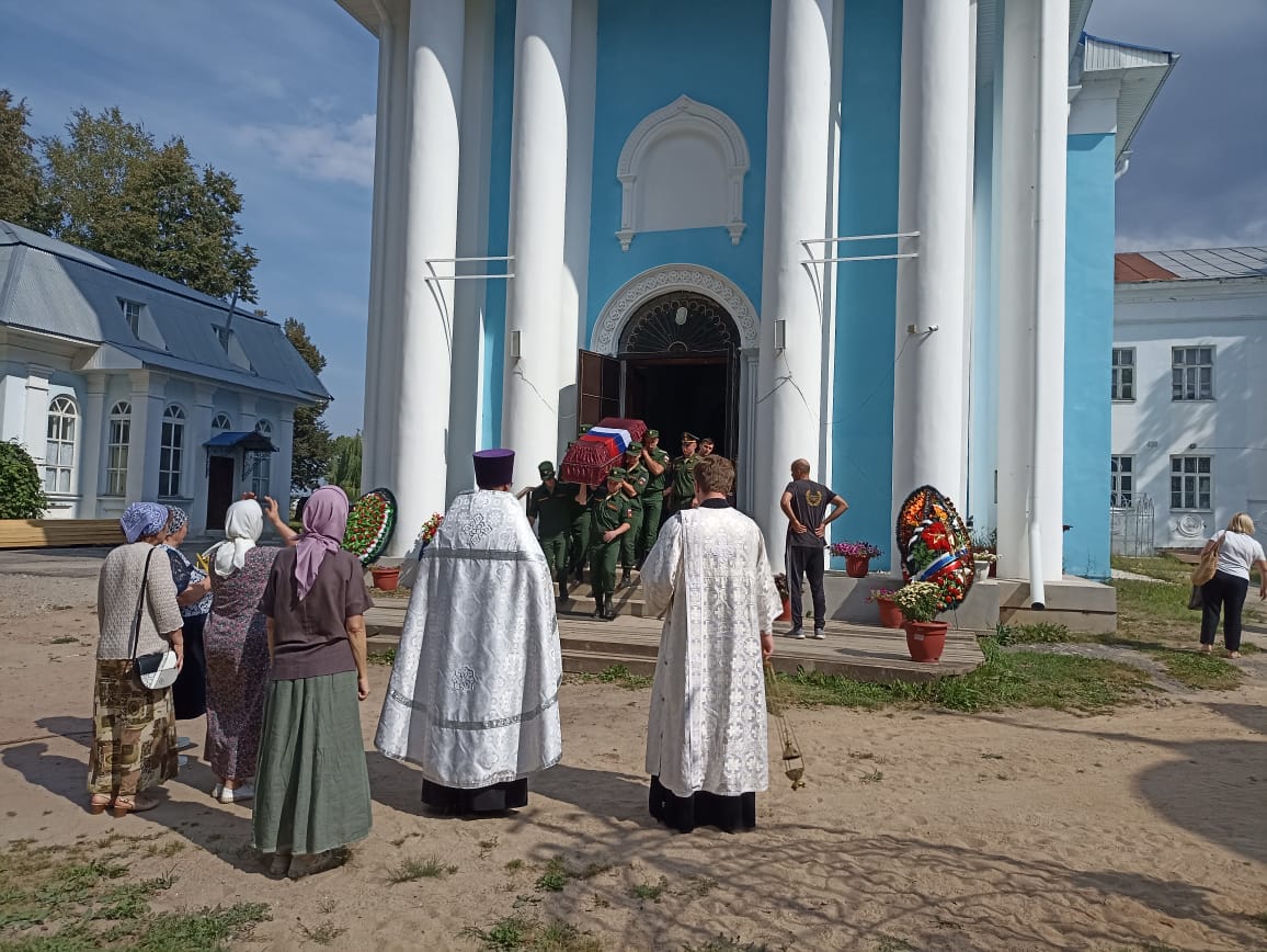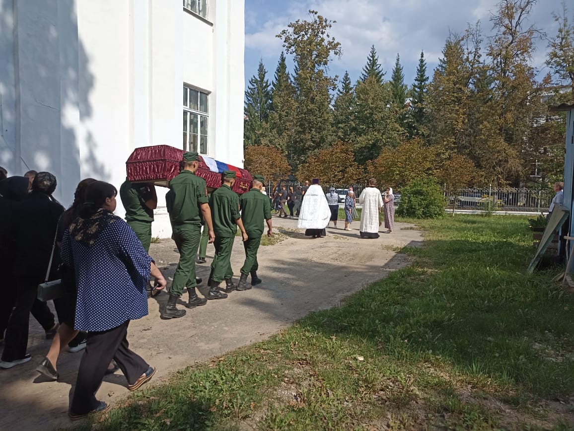 Крестным ходом из храма проводили гроб с телом Алексея в последний путь. Около храма, на улице, священник и певчие отслужили литию о погибшем воине.