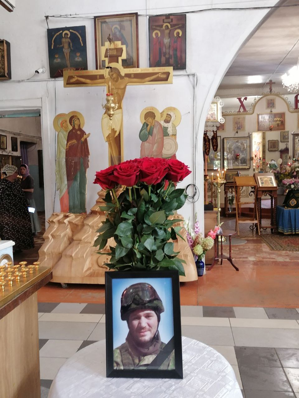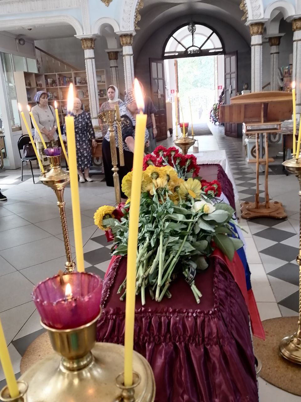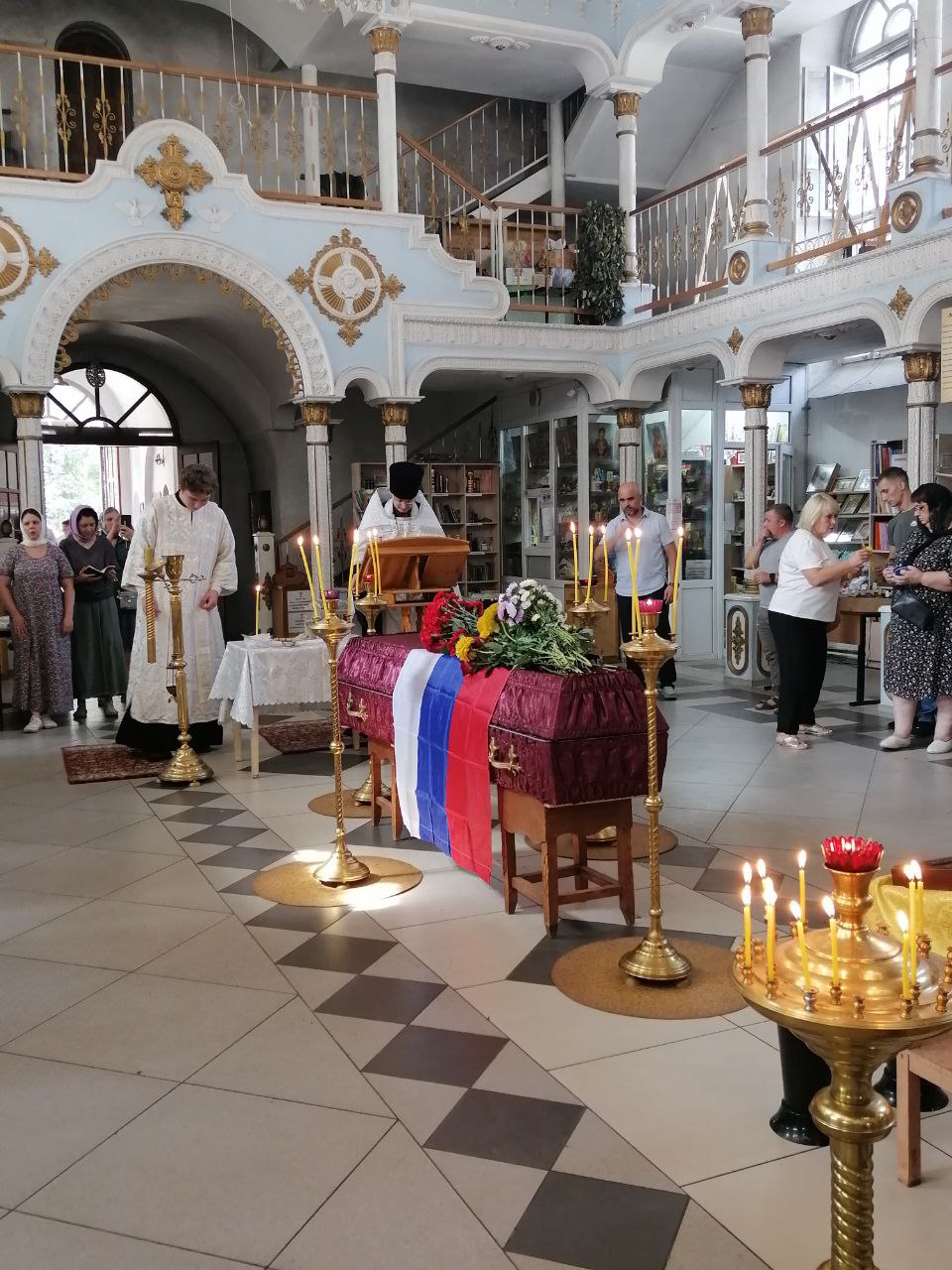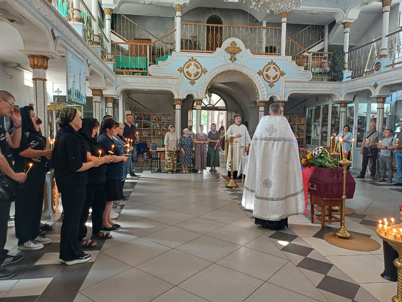 Крестным ходом из храма проводили гроб с телом Алексея в последний путь. Около храма, на улице, священник и певчие отслужили литию о погибшем воине.