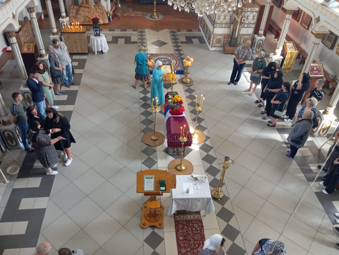 В храме о упокоении новопреставленного раба Божия Алексия молились родные, друзья, коллеги, официальные лица: глава администрации «Город Людиново и Людиновский район» Стефан Перевалов, заместитель главы по молодёжной политике Ольга Рысина, военный комиссар Людиновского и Жиздринского районов Владимир Воронцов, председатель муниципального отделения «Отцы России» в городе Людиново Артём Родичкин, а также жители города и прихожане собора.
