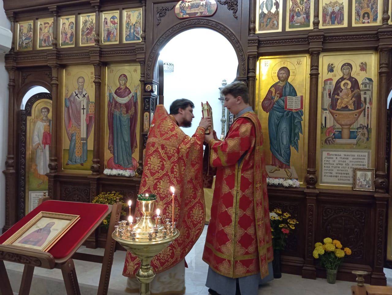 В храме в честь иконы Божией Матери «Живоносный Источник» города Людиново в ночь на 2 сентября иерей Иоанн Майоров отслужил ночную Божественную литургию в сослужении диакона Никиты Агарева. Ровно 106 лет назад, 2 сентября, в час ночи был расстрелян священномученик Владимир Четверин, который особо почитается в храме. Мощи священномученика Владимира вшиты в святой антиминс, который епископ Никита Козельский и Людиновский преподнес в дар храму в день его малого освящения.