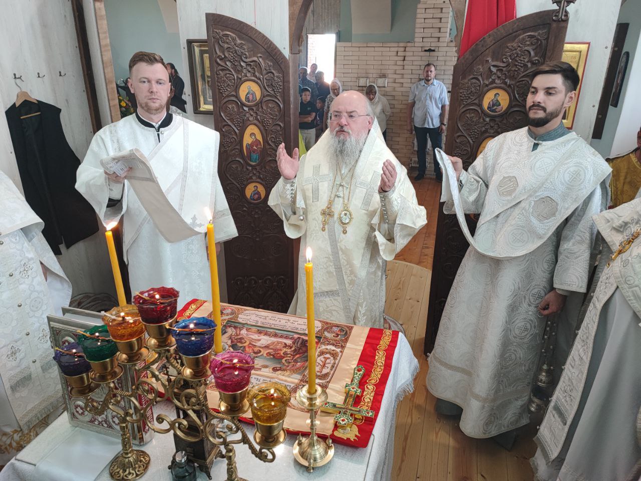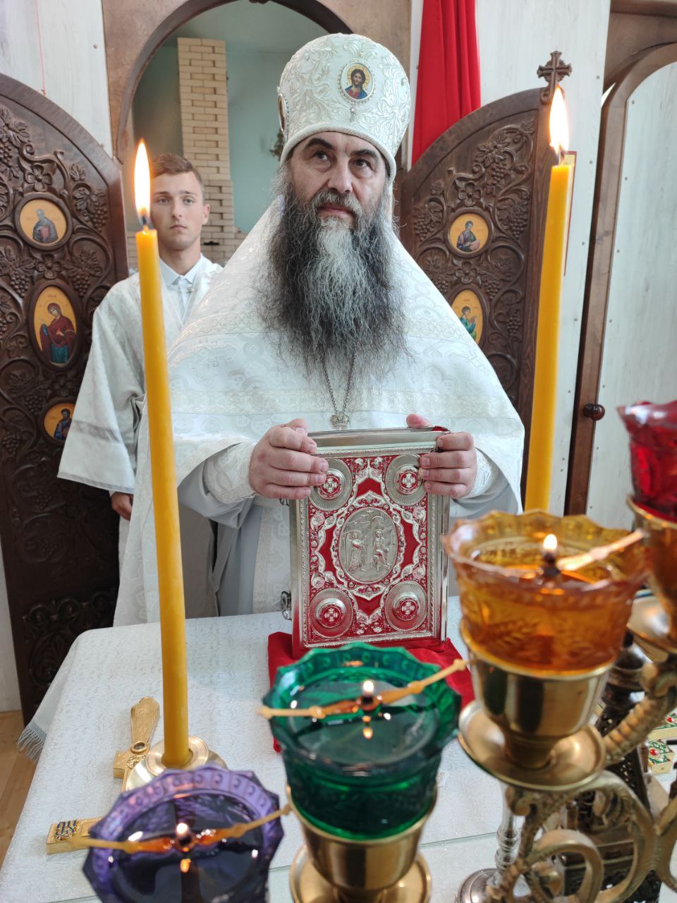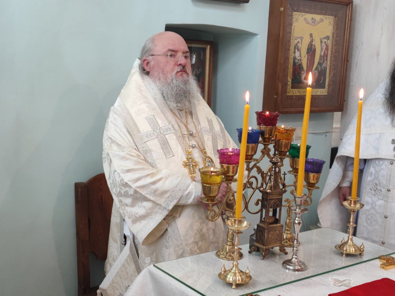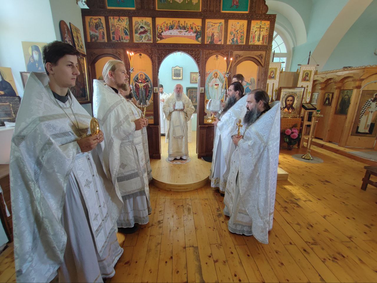 По окончании литургии священнослужители совершили славление Успению Пресвятой Богородицы и преподобномученику Игнатию, а затем владыка обратился к богомольцам с проповедью.
