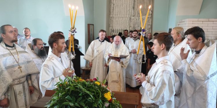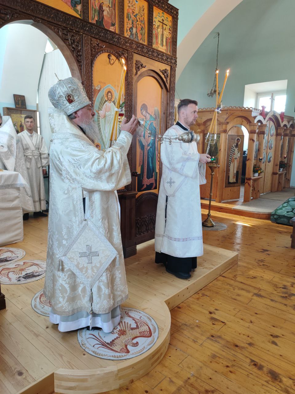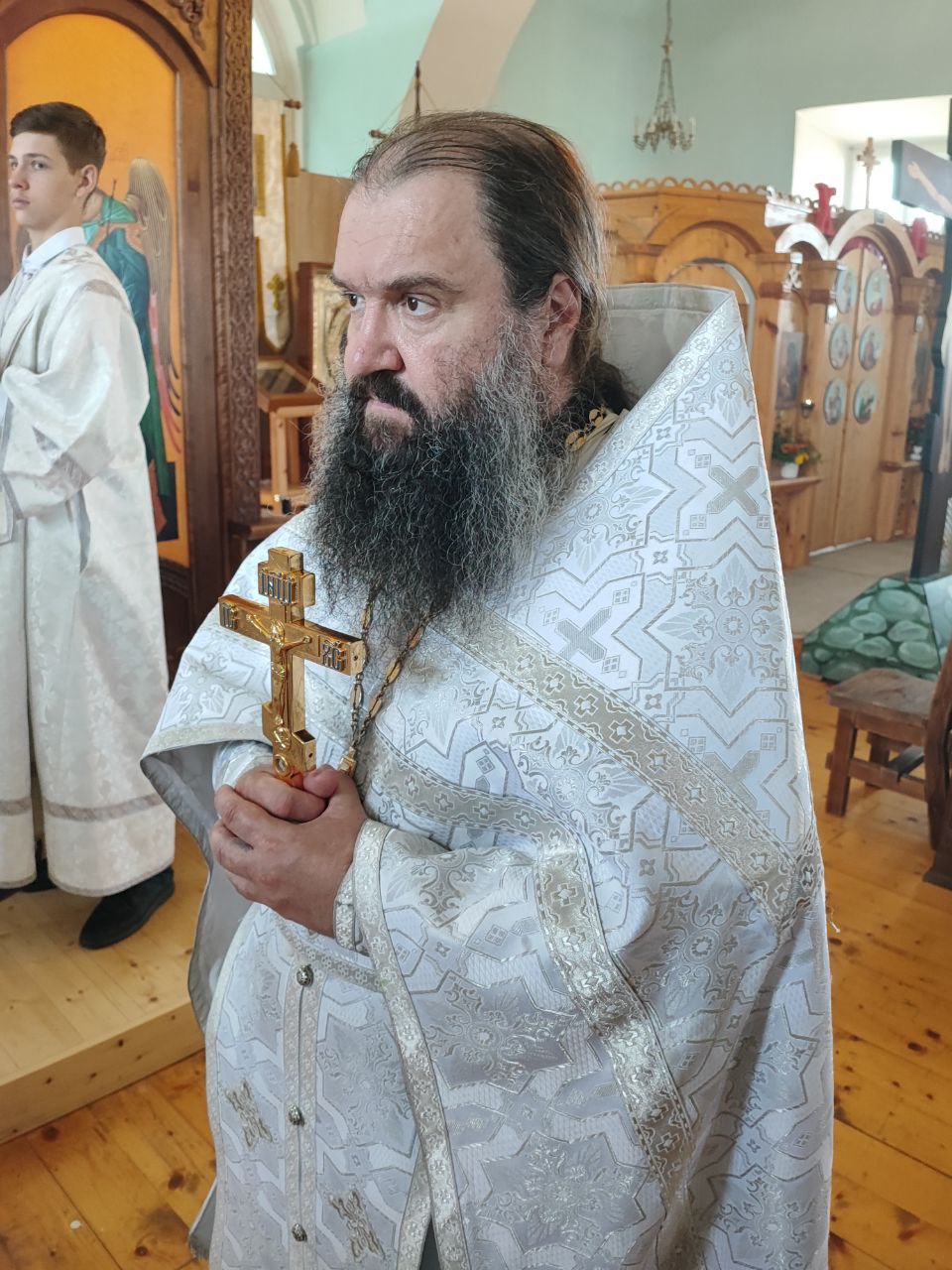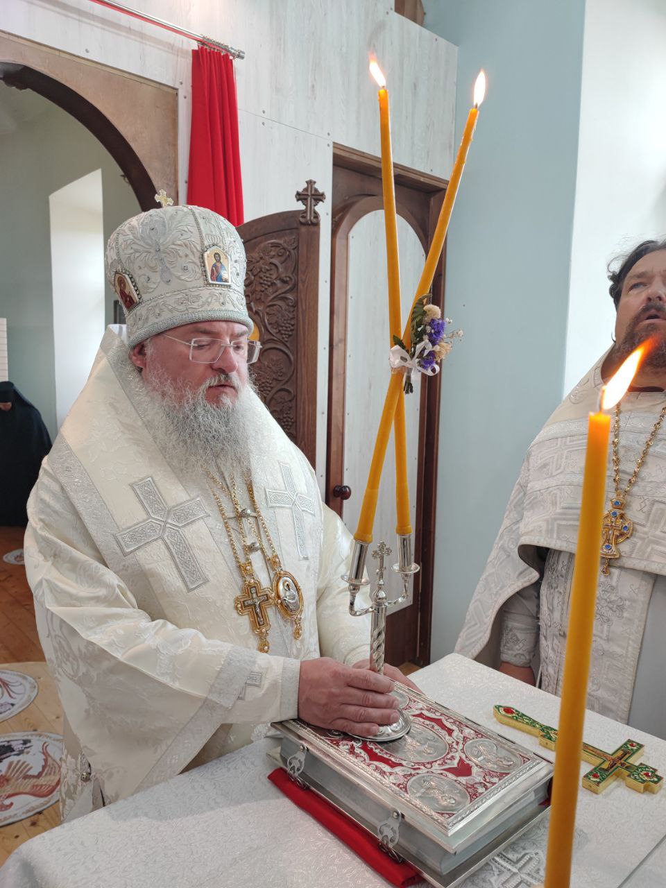 По окончании литургии священнослужители совершили славление Успению Пресвятой Богородицы и преподобномученику Игнатию, а затем владыка обратился к богомольцам с проповедью.