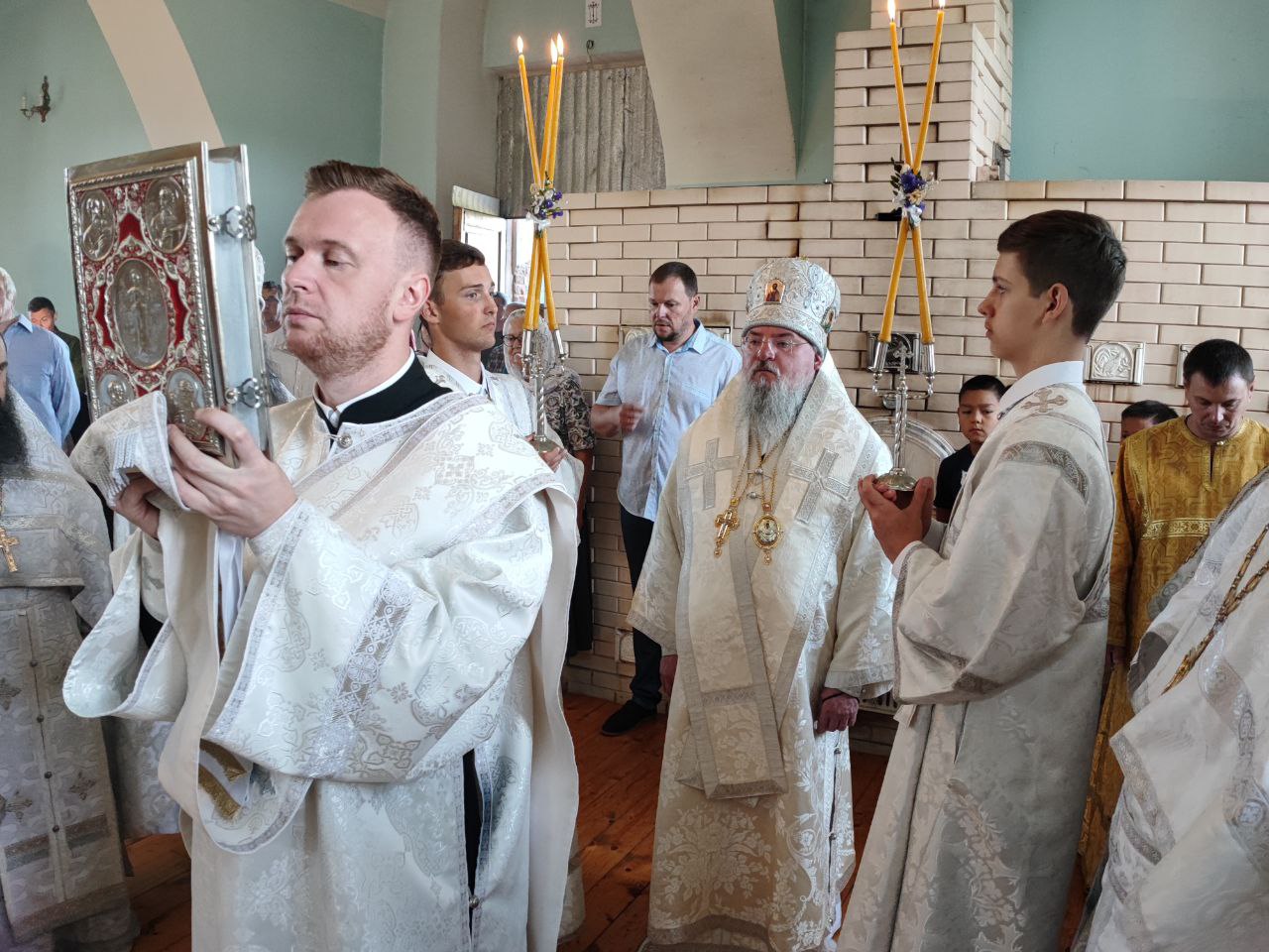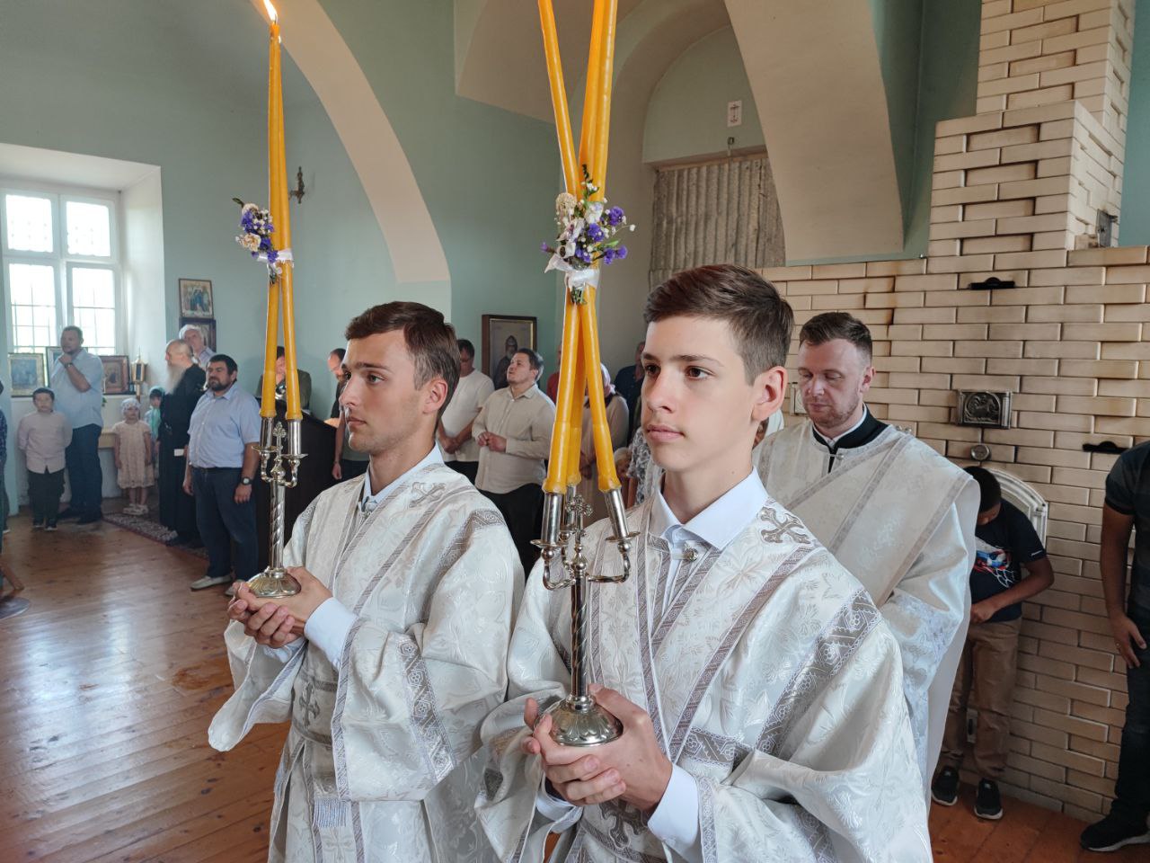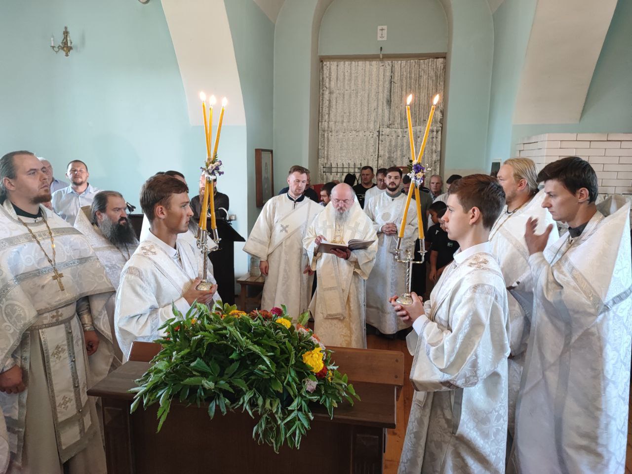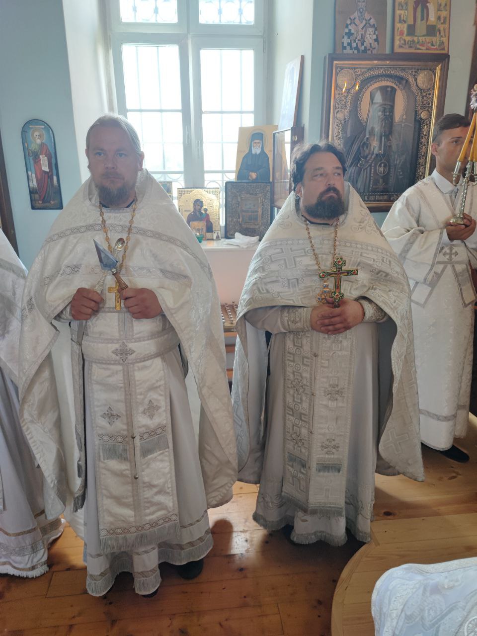 Архипастырю сослужили: архимандрит Михаил (Семенов) — наместник монастыря Спаса Нерукотворного пустынь в селе Клыково; протоиерей Владимир Бахаев – секретарь Козельской епархии; иеромонах Игнатий (Кисилев) – настоятель прихода; иерей Сергий Барыкин; иерей Виктор Носов; иерей Филипп Лисенков; диакон Евгений Ковригин и диакон Евгений Васильев.